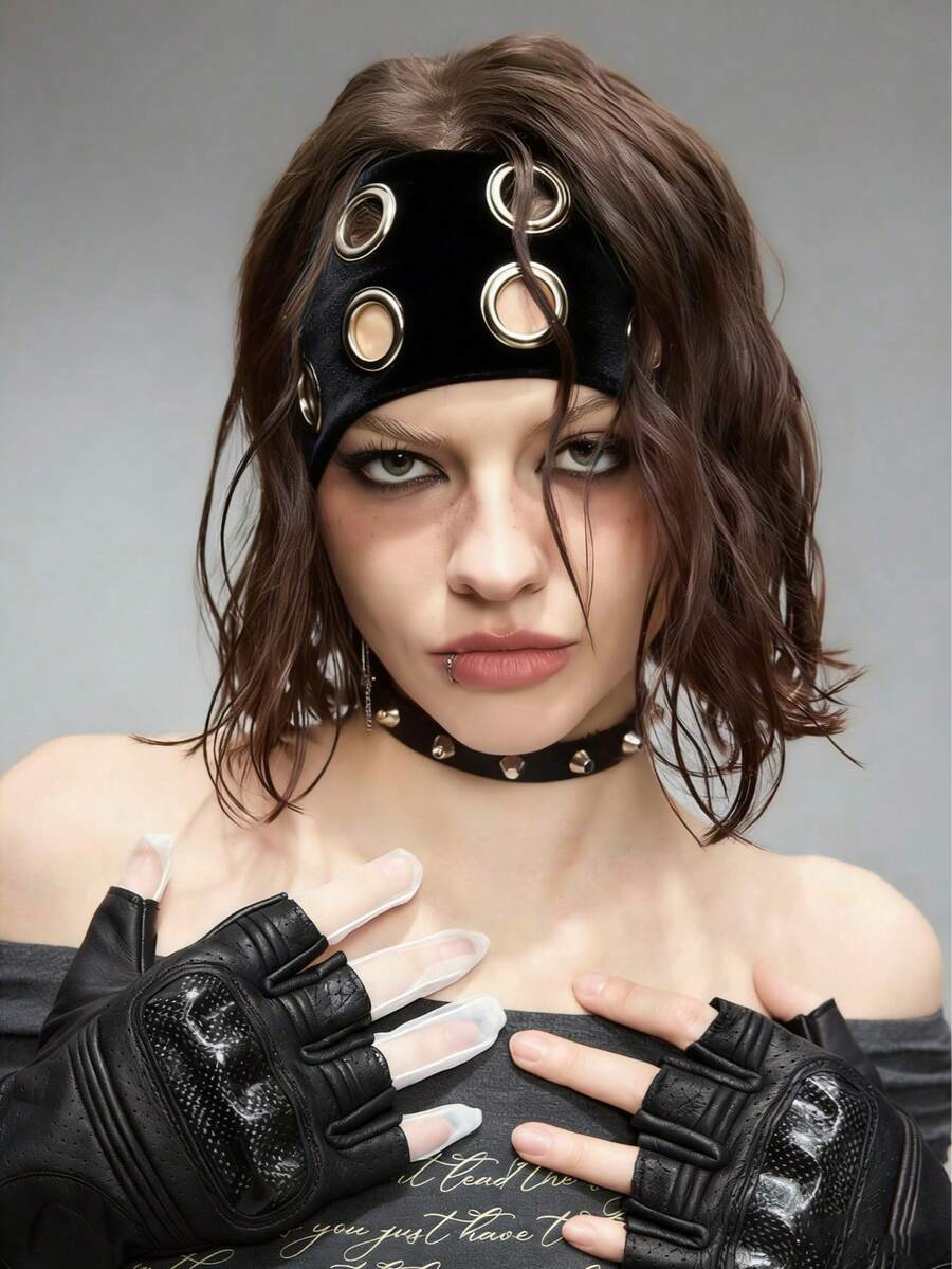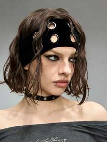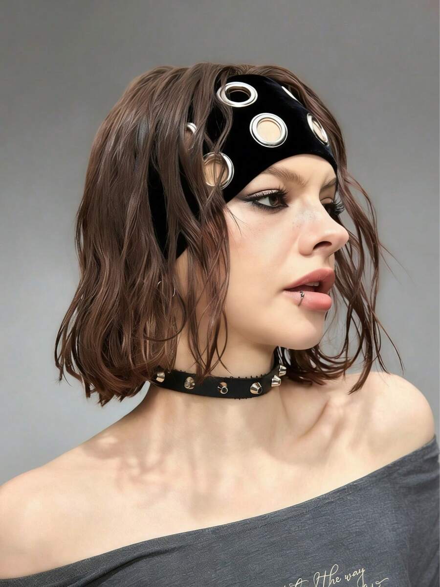 Grunge Punk 1 Piece Punk Metal Circle Headband, Street Knitted Headband, Yoga, Sports Elastic Headband.