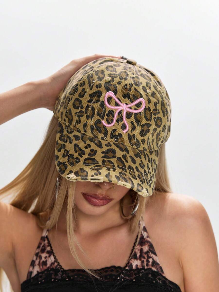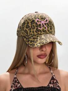Grunge Punk 1 Piece Women Bowknot Leopard Print Baseball Cap, Suitable For Everyday Wear