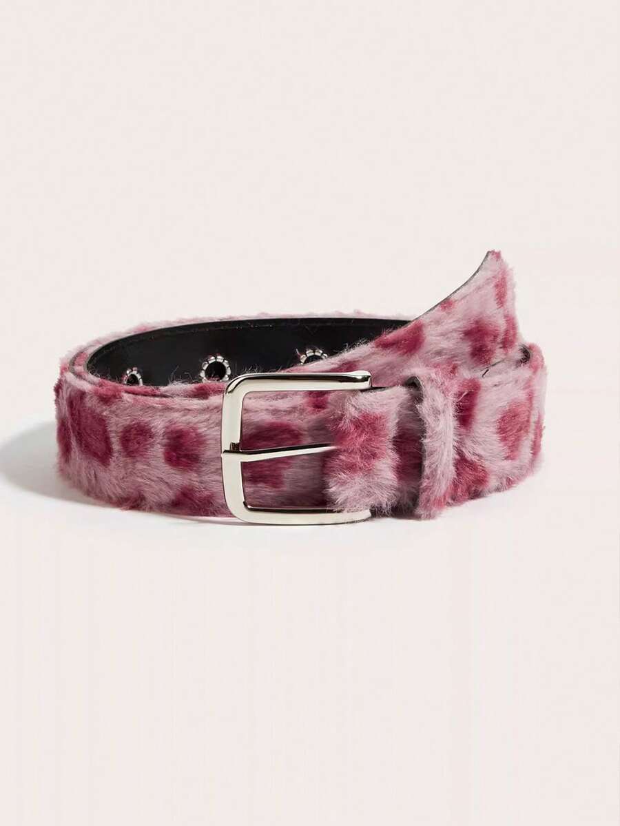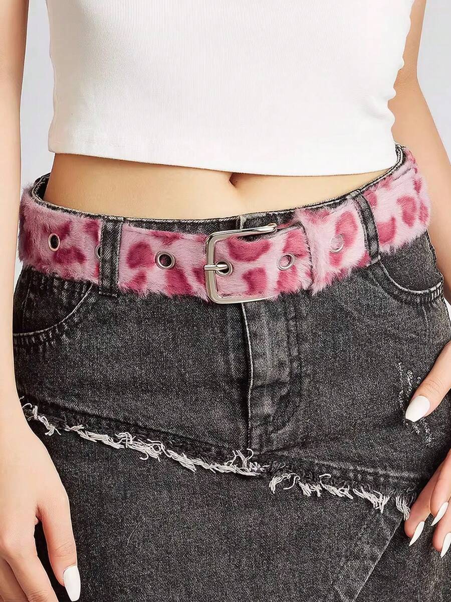 Grunge Punk 1 Punk Pink Leopard Print Belt, Retro Y2K Fashion Furry Square Buckle Leather Belt, Personalized Fashional Decorative Belt