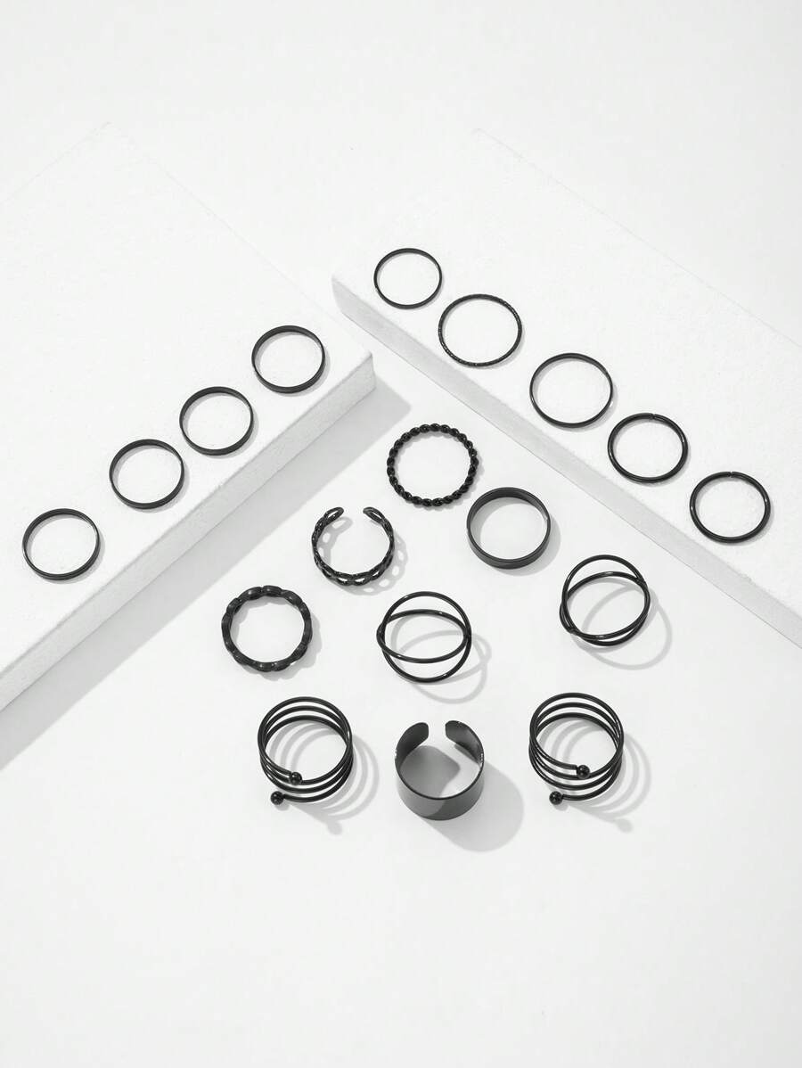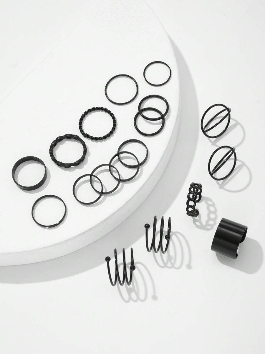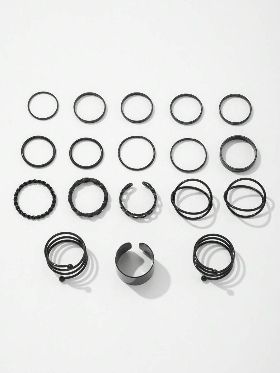 Grunge Punk 18pcs/Set Minimalist Dark Gothic Alloy Ring Set, Gift For Women, Halloween