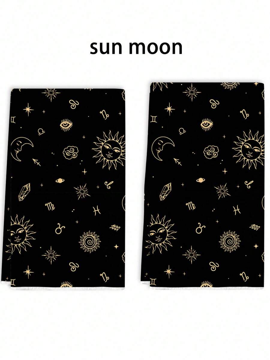 Grunge Punk 1PC Dark Celestial Print Polyester, Sun Moon Gothic Hand Towel - Quick-Dry Absorbent Kitchen & Altar Cloth, Witchy Bath Decor For Halloween, Dark Academia Gifts - Occult Gothic Home Essentials