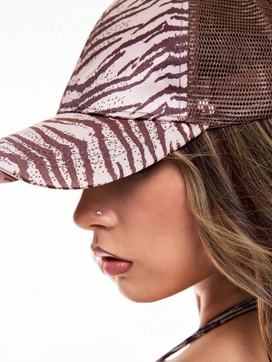 Grunge Punk 1pc Adjustable Zebra Patterned Baseball Cap, Y2K Style Casual Design Hat, Personalized Daily Accessories