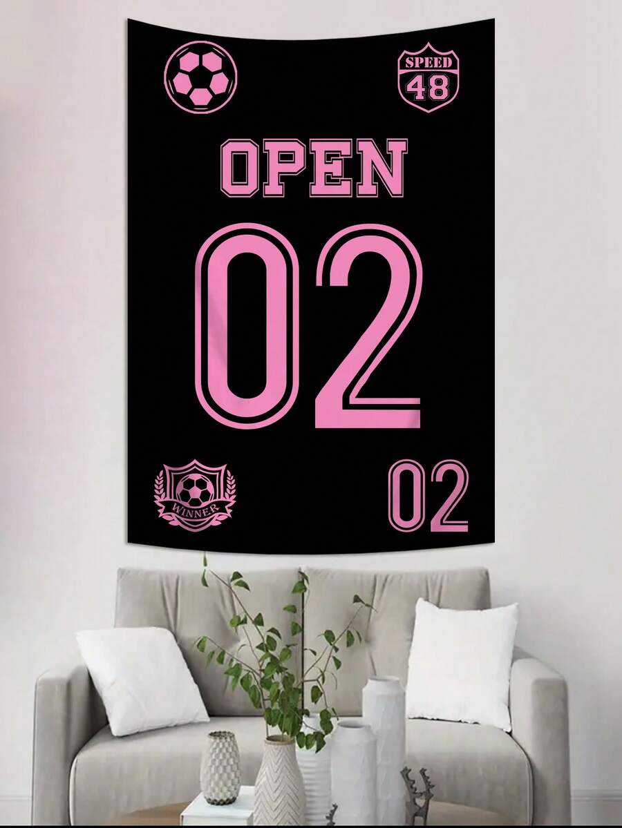 Grunge Punk 1pc Black Jersey Number Pattern Hanging Wall Tapestry, Suitable For Living Room And Bedroom