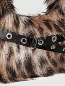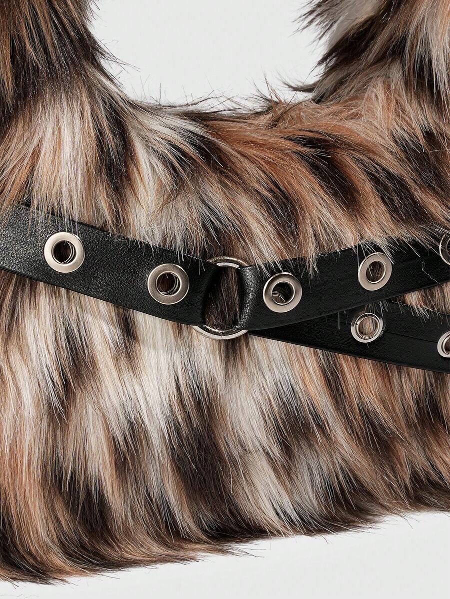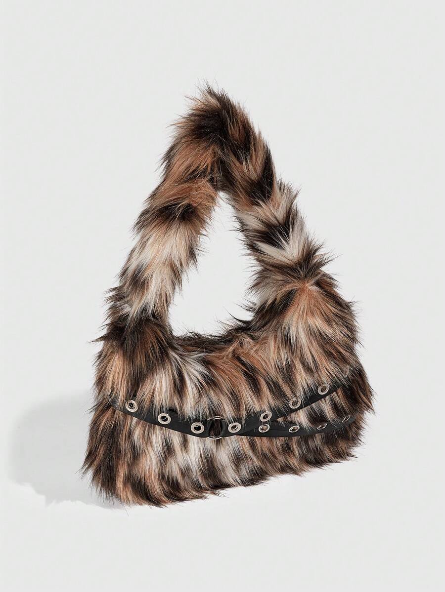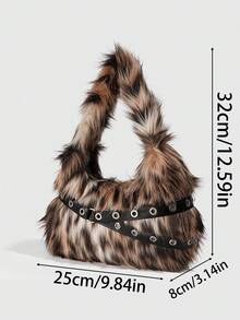 Grunge Punk 1pc Chic Brown Leopard Print Plush Bag For The Underarm Area, A Y2K Edgy Handbag For Ladylike Individuals, A Punk-Inspired Small Bag With PU Leather Decoration, Suitable For Pairing With A Handbag At Parties And Gatherings
