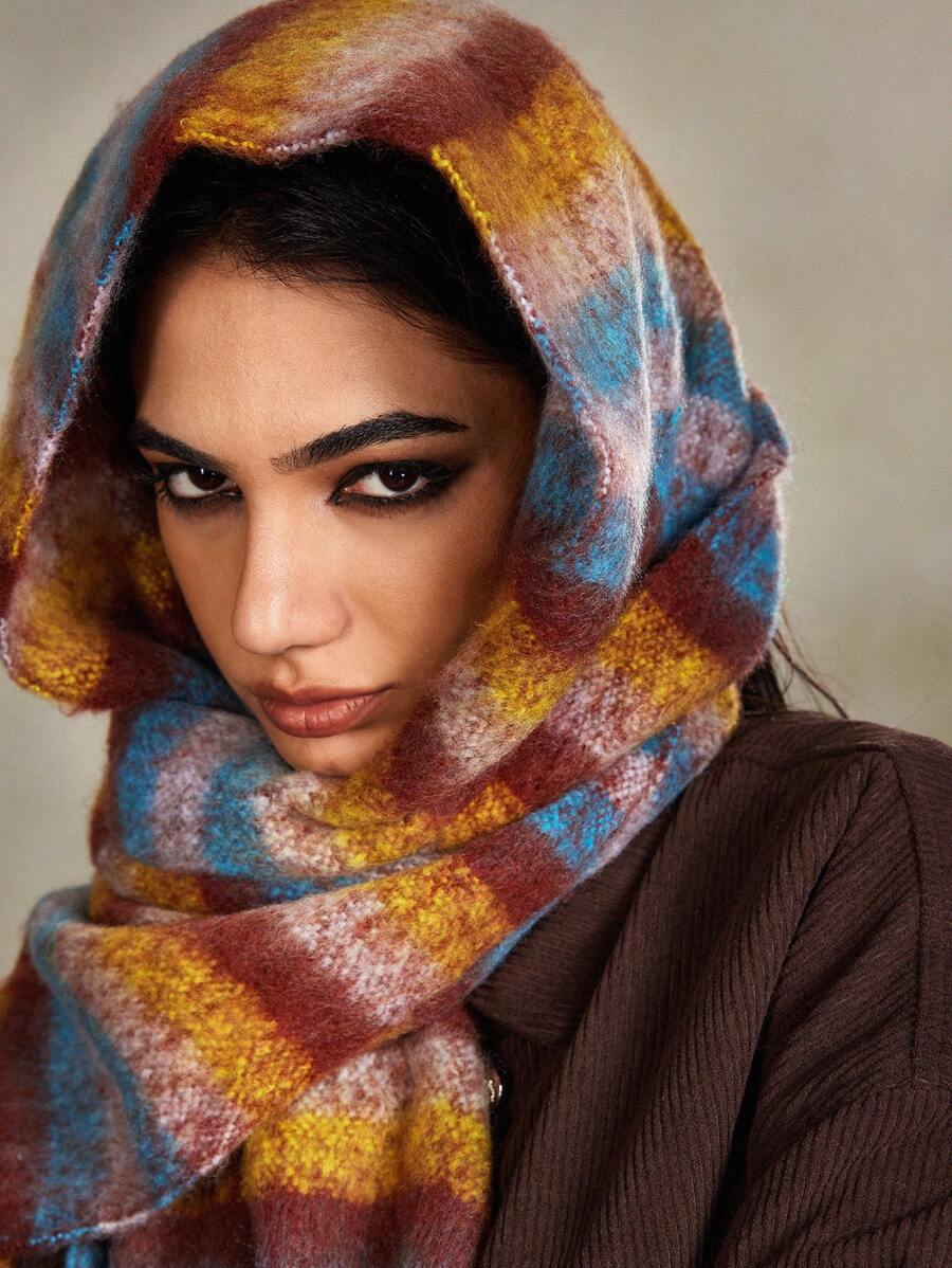 Grunge Punk 1pc Color Block Striped Scarf, Thick Warm And Soft Winter Scarf, Fashionable Rectangular Oversized Scarf For Daily Wear