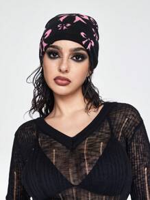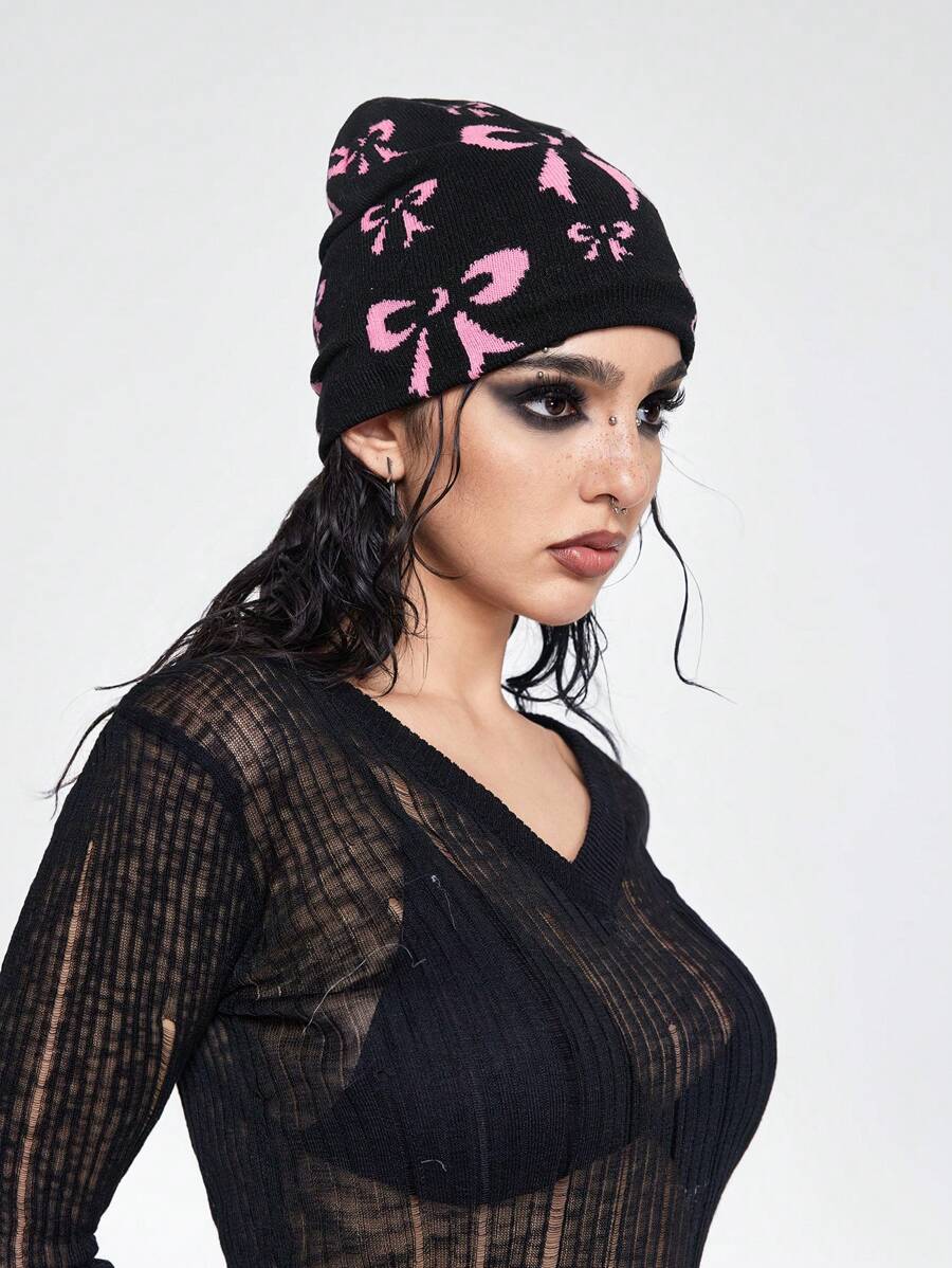 Grunge Punk 1pc Cute Bow Design Hat, Y2K Style High Quality Contrast Color Warm Beanie, Suitable For Daily Wear Valentines