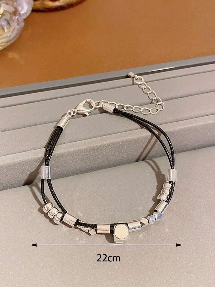 Grunge Punk 1pc Double Layered Square Link Chain Bracelet