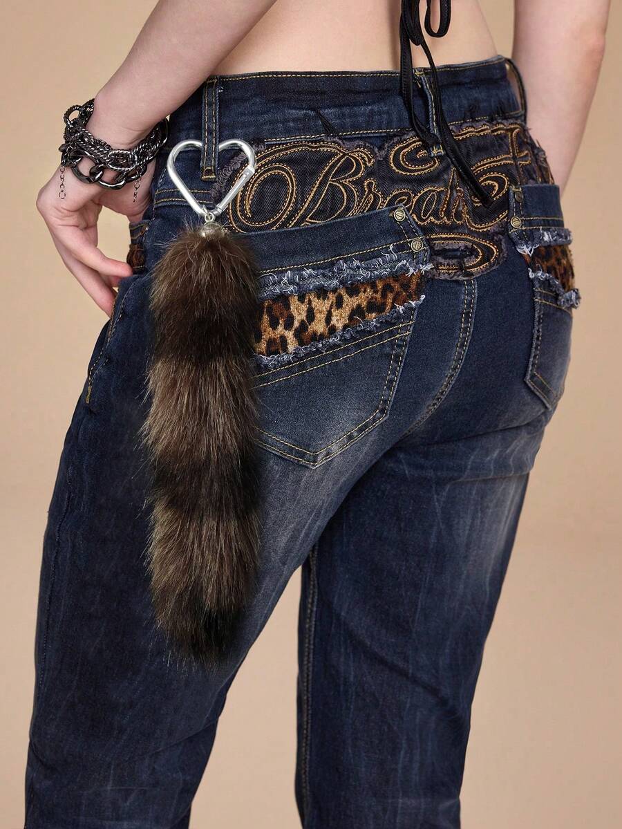 Grunge Punk 1pc Fashionable & Exquisite Brown Striped Faux Fur Fox Tail Keychain, DIY Bag Charm Accessory, Suitable For Women, Fashionable Gift