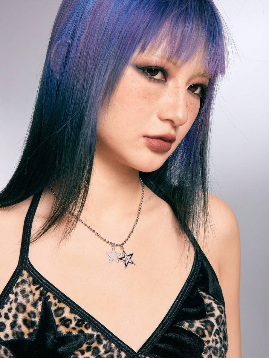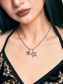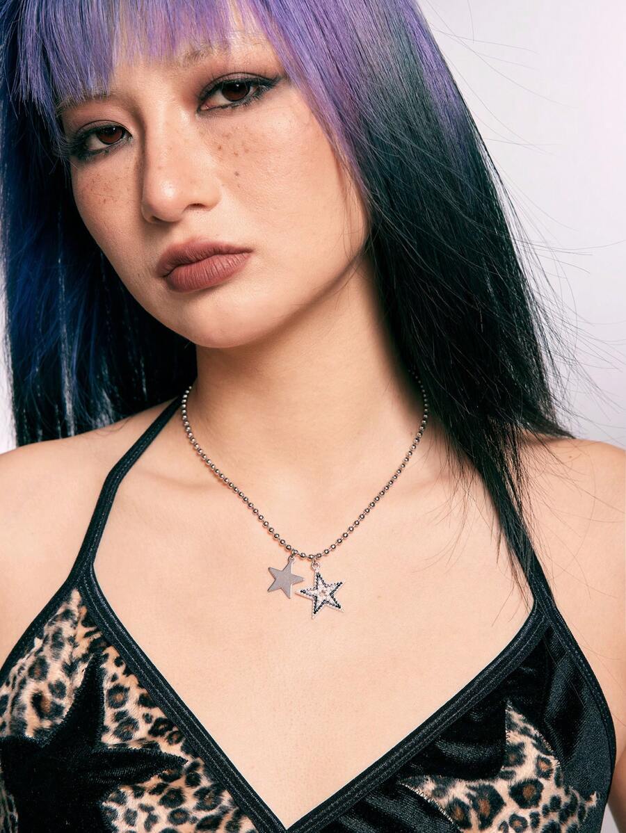 Grunge Punk 1pc Five Pointed Star Pendant Necklace (Rhinestone Placement Random)