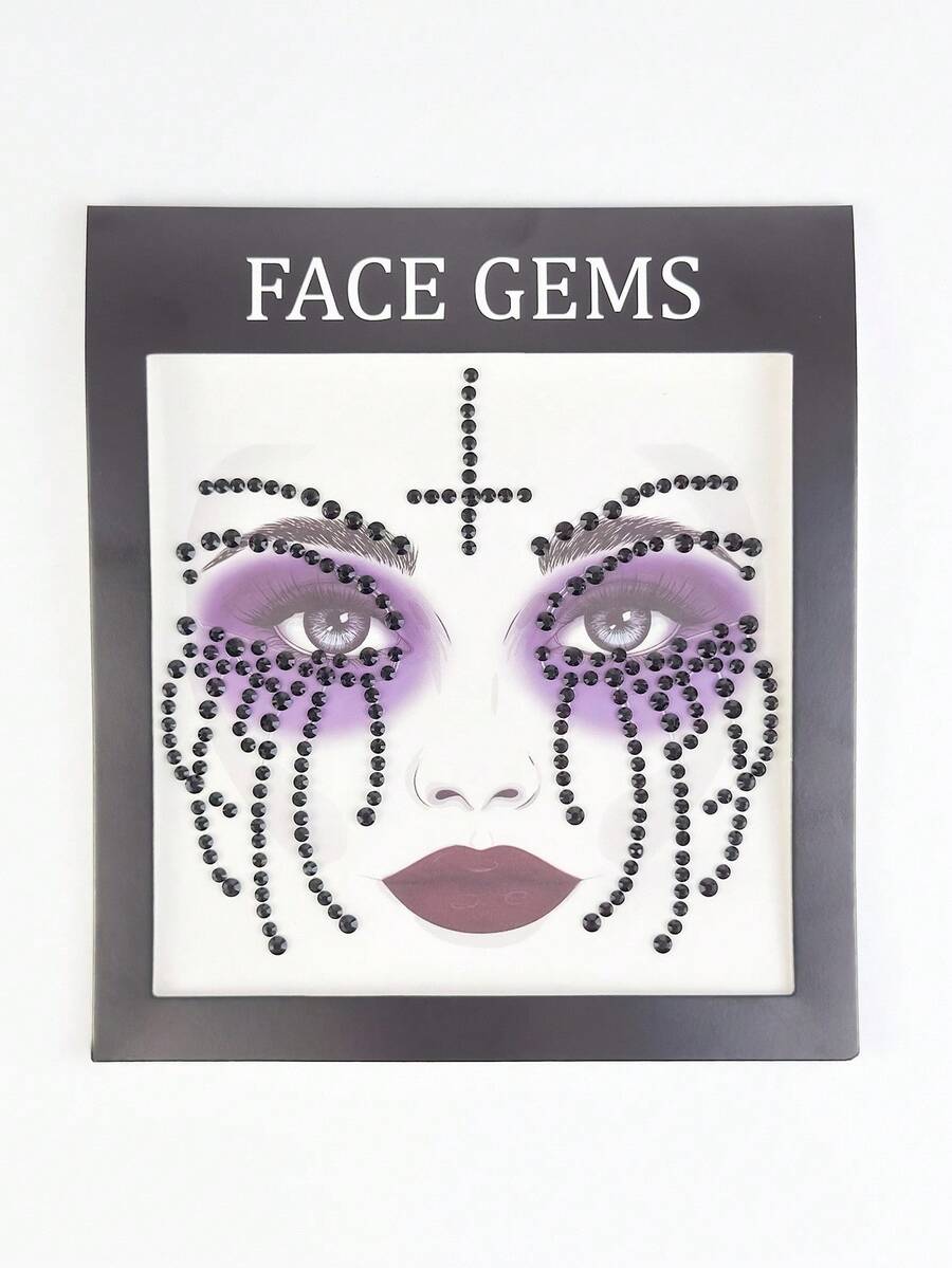 Grunge Punk 1pc Gothic Style Teardrop Cross Halloween DIY Diamond Glitter & Face Jewel Stickers