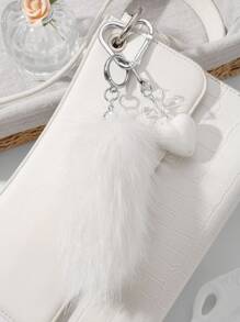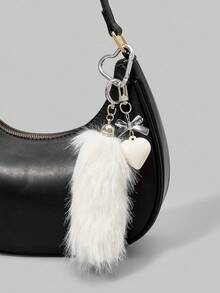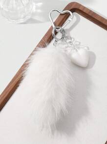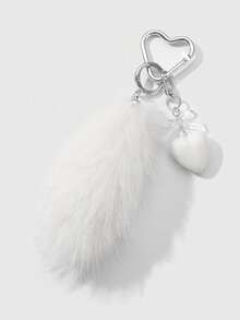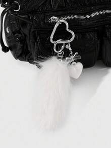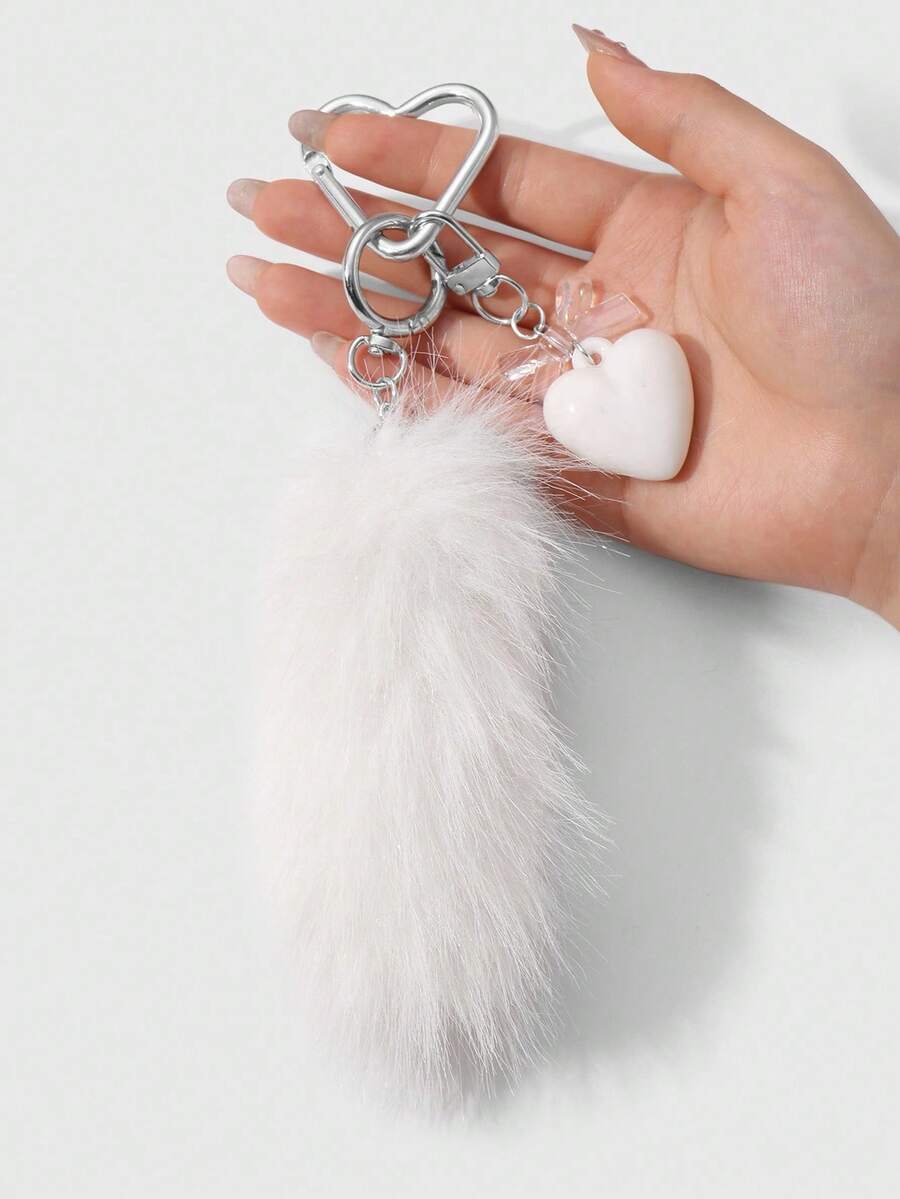 Grunge Punk 1pc INS Style Minimalist Elegant Fashion Vintage High-End White Acrylic Bow Heart Plush Animal Mini Tail DIY Keychain Bag Pendant, Suitable For Women Daily Wear, Gift