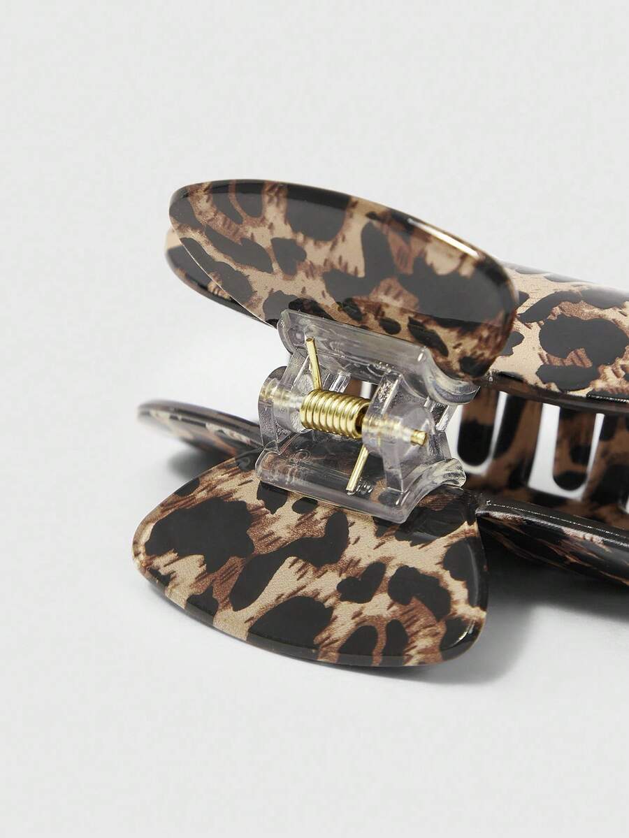 Grunge Punk 1pc Leopard Print Hair Clip, Elegant Hair Claw Clip For Women