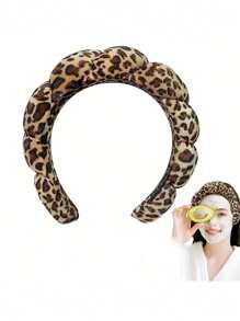 Grunge Punk 1pc Leopard Print Twisted Cloud Sponge Hairband High Headband For Women's Makeup, Face Washing And Hair Accessories