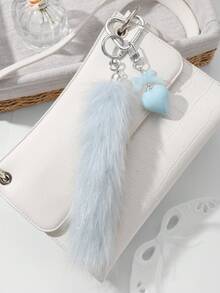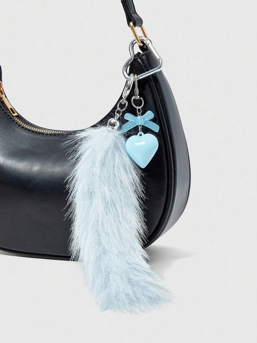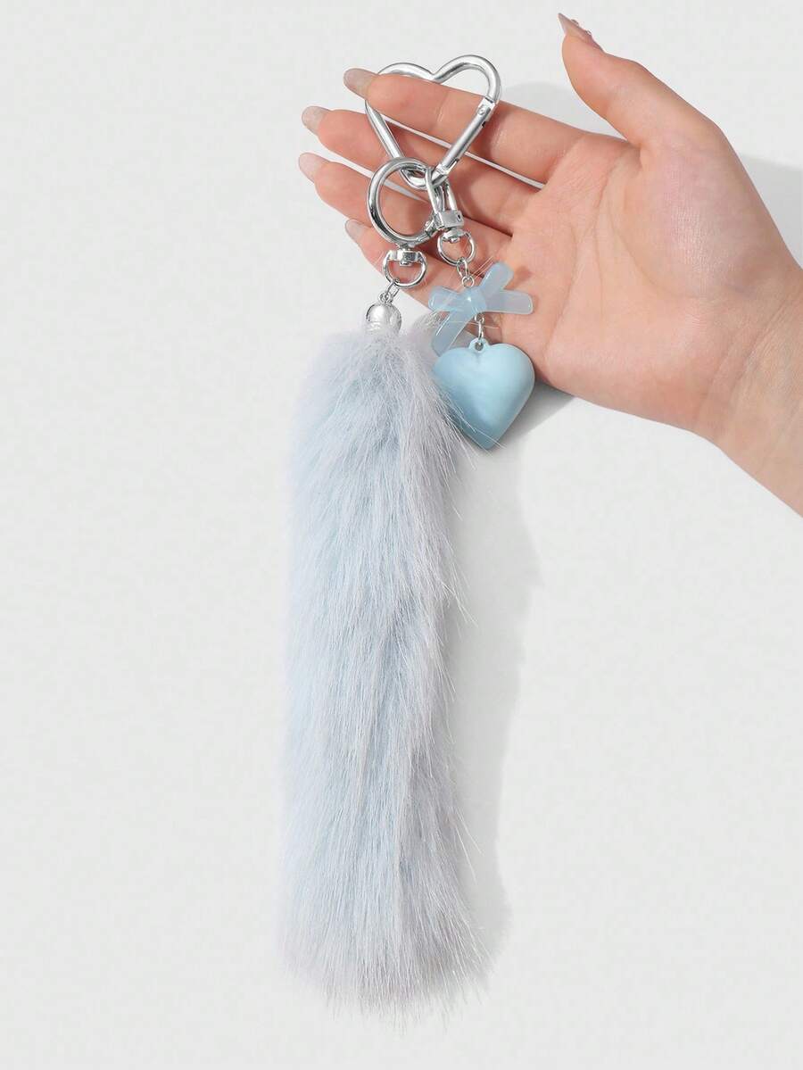 Grunge Punk 1pc Minimalist Cute Acrylic Bow, Heart & Fuzzy Animal Tail Keychain, Fashionable Gift Suitable For Women, Daily Wear, Holidays