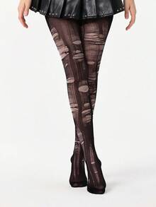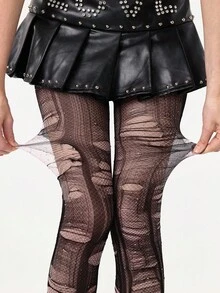 Grunge Punk 1pc Minimalist Romantic Rhinestone Fishnet Stockings + 2pcs Versatile Simplistic Black Tights (Tights Need To Be Manually Torn)