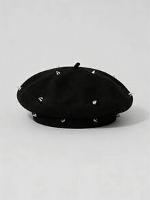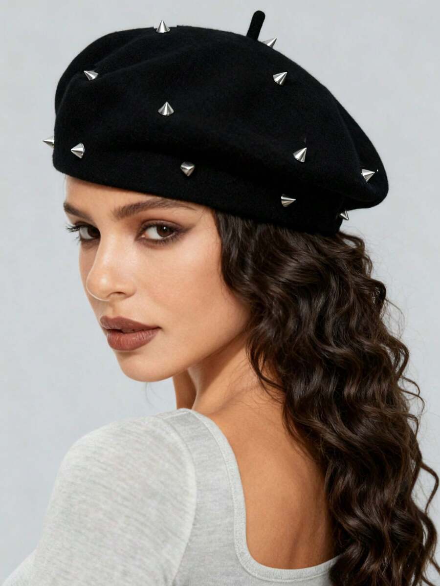 Grunge Punk 1pc Punk Style Circular Hollow Rivet Beret Hat, Y2K Round Pendant Newsboy Cap, Daily Personalized Fashion Item