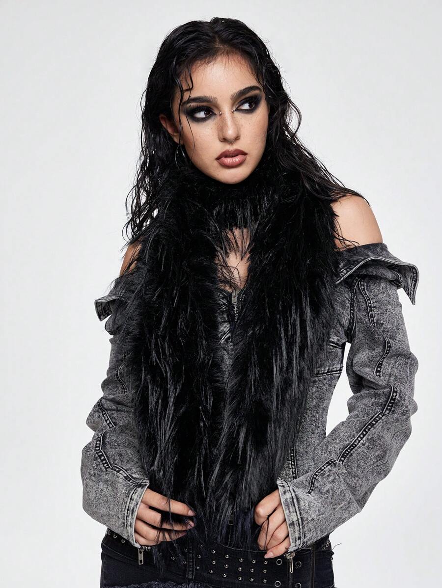 Grunge Punk 1pc Simple Solid Color Fuzzy Scarf, Y2K Warm Shaggy Extra Long Scarf, Thick Everyday Wrap