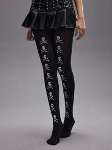 Grunge Punk 1pc Skull & Sexy Pattern High Elastic Women Pantyhose / Tights