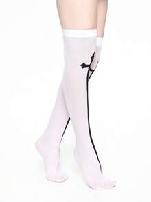 Grunge Punk 1pc White Kawaii Sweet Cute Y2K Cross Plain Simple Fashion Over-The-Knee Socks For Women, Suitable For Anime, Lolita, Yandere, Cosplay, Daily Outfit