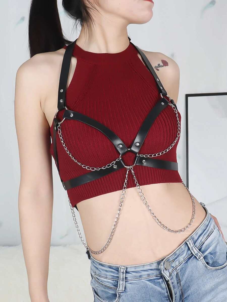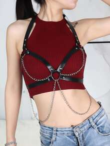 Grunge Punk 1pc Women Chain Decor Fashion Harness Belt, For Dress Decoration