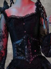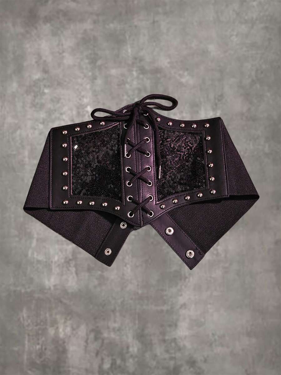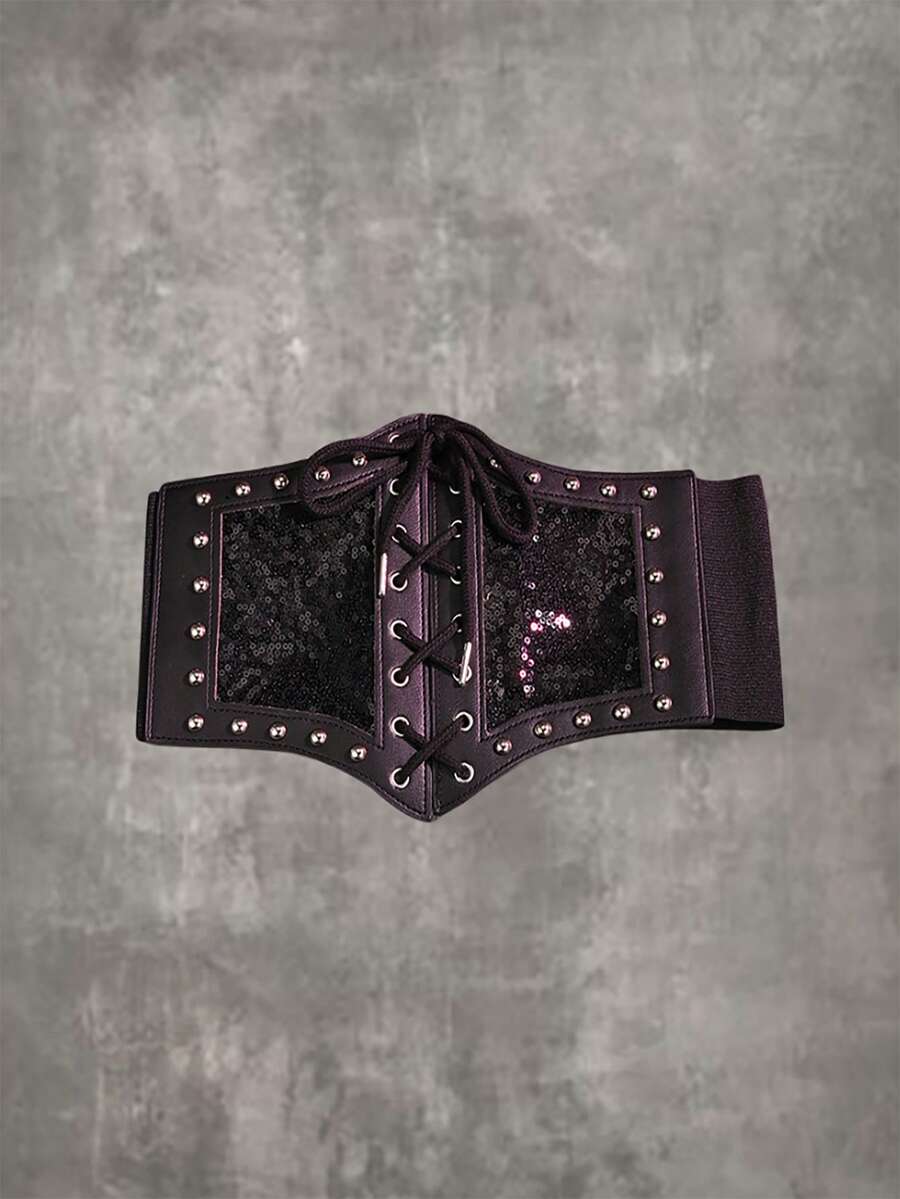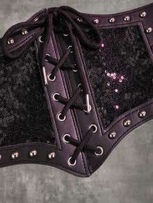 Grunge Punk 1pc Women Contrast Sequin Studded Decor Corset Belt