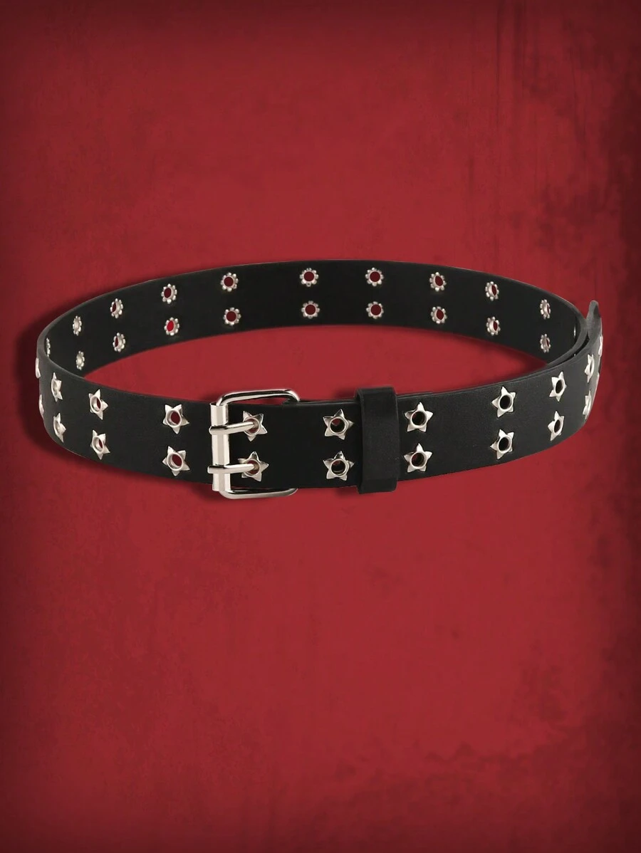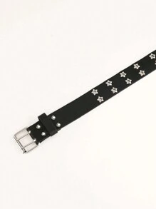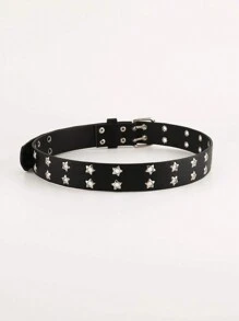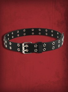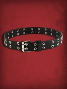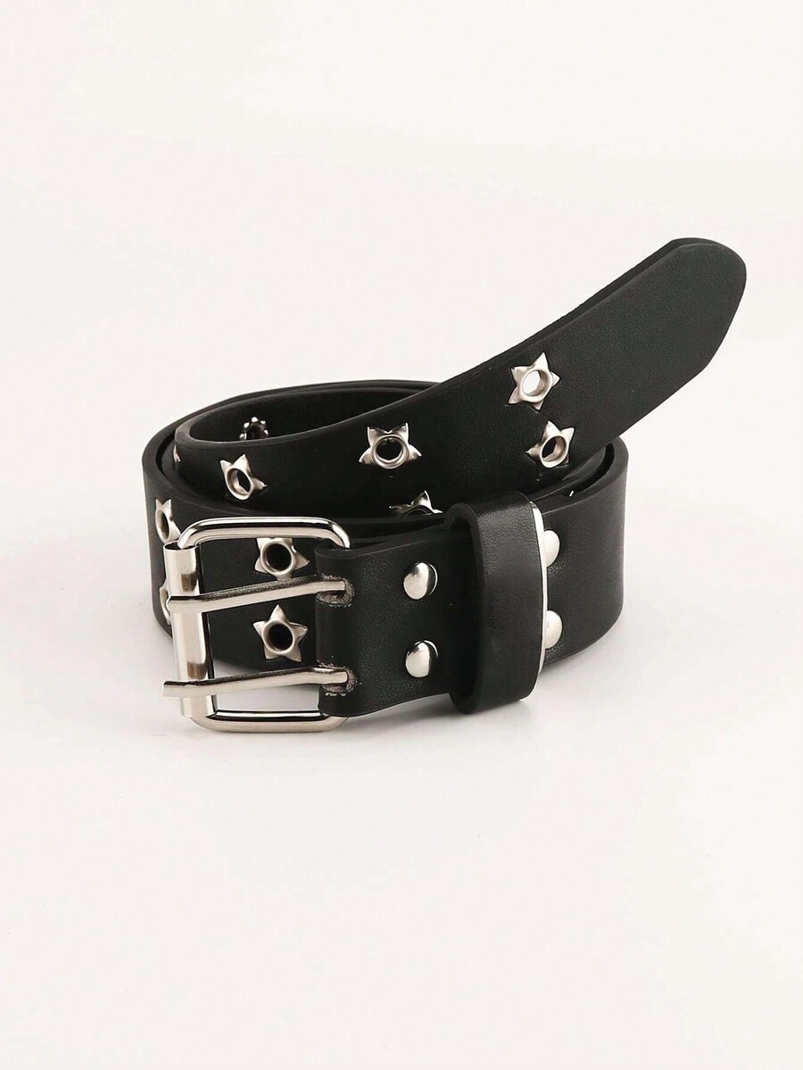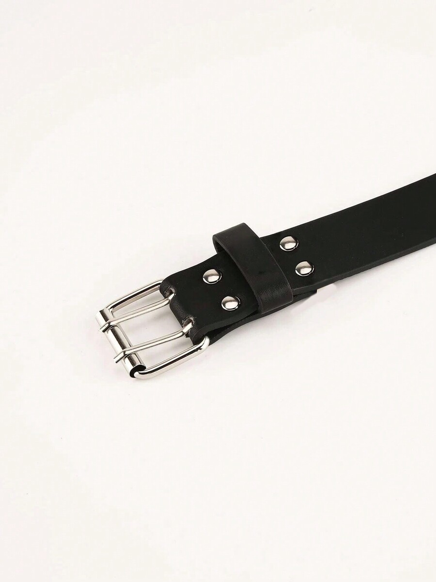 Grunge Punk 1pc Women Eyelet Decor Square Buckle Belt