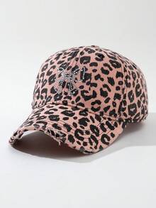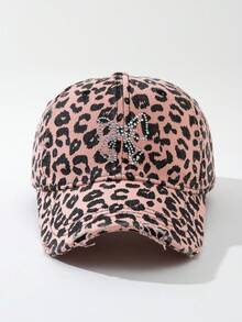 Grunge Punk 1pc Women's Bow Leopard Print Rhinestone Baseball Cap
