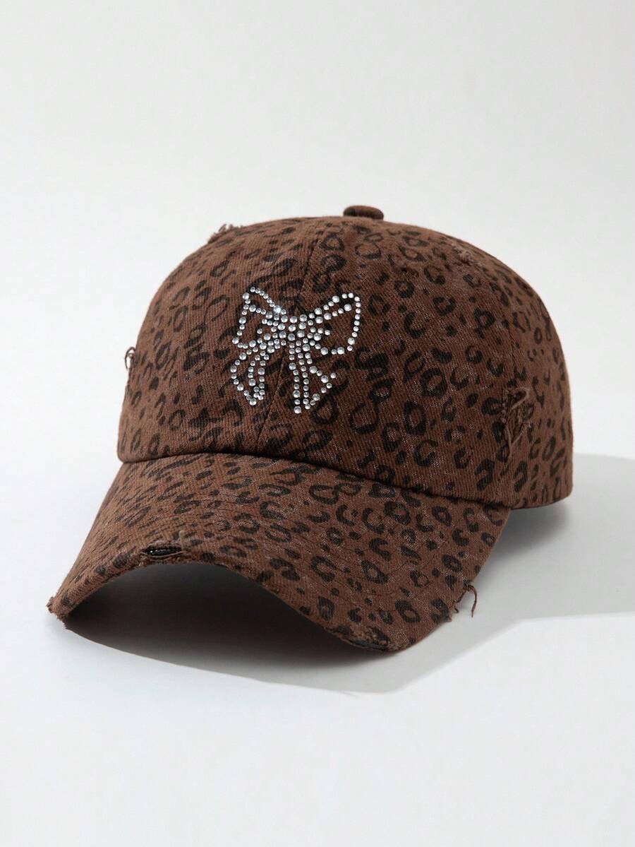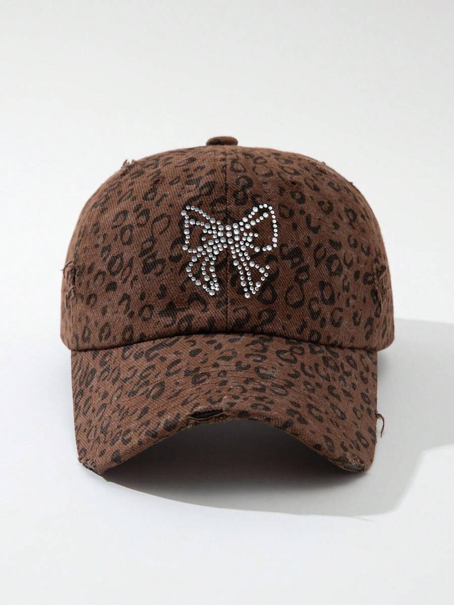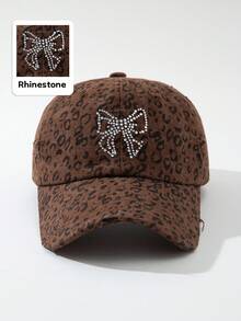 Grunge Punk 1pc Women's Bow Leopard Print Rhinestone Baseball Cap