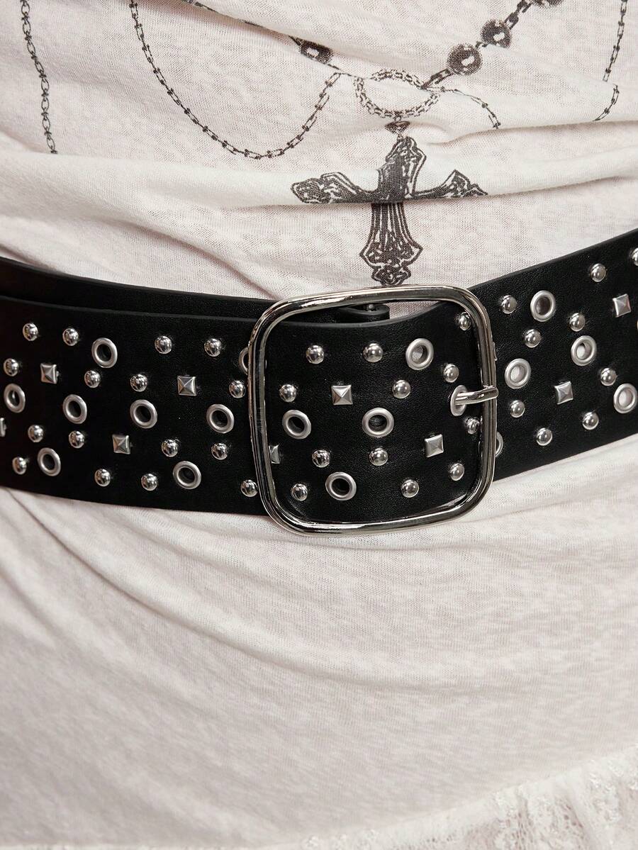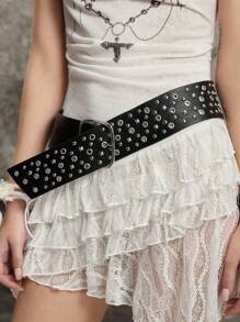 Grunge Punk 1pc Women's Punk-Style Wide Belts With Rivet Design, Decorative Waist Belt For Dresses, Personal Design