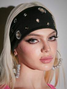 Grunge Punk 1pc Y2K Baddie Subculture Hollow Out Headband, Vintage American Indie Dark Minimalist Star Geometric Rivet Metal Hair Accessory, Sporty Street Punk Everyday Versatile Decoration