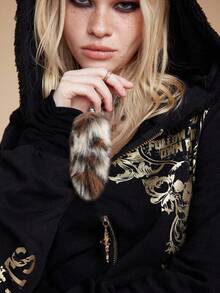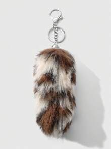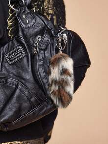 Grunge Punk 1pc Y2K Retro Adorable High-Quality Brown Plush Faux Leopard Print Animal Tail Keychain & Keyring, Fashionable Accessory Suitable For Women And Girls, Great Gift Idea