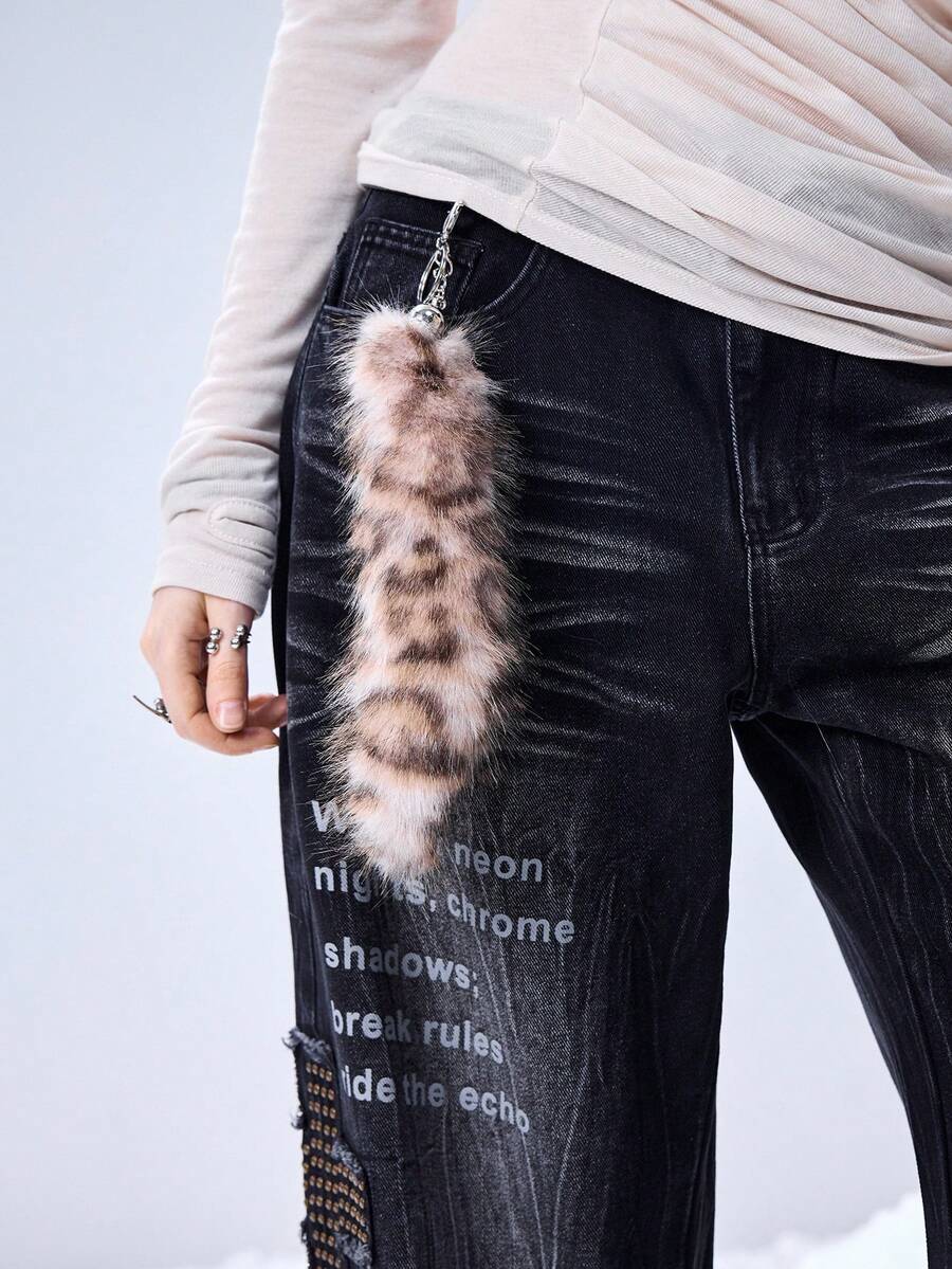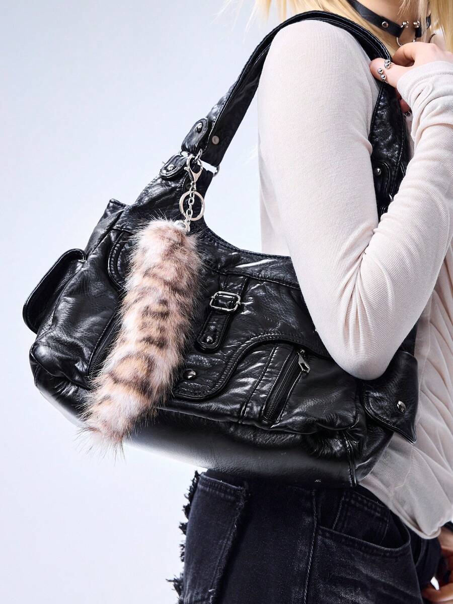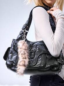 Grunge Punk 1pc Y2K Retro Cute Personalized Versatile High-Quality Brown Ombre Faux Fur Fox Tail DIY Keychain Bag Charm, Suitable For Women/Girls Daily Wear, Holiday Gift