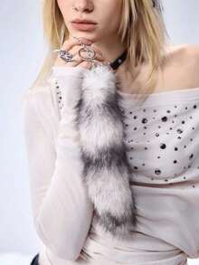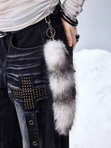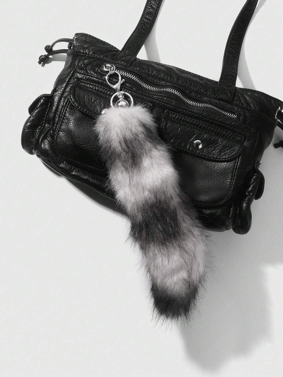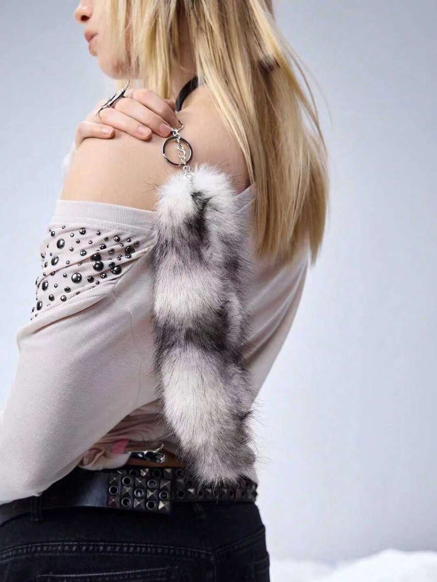 Grunge Punk 1pc Y2K Retro Cute Personalized Versatile High-Quality Brown Ombre Faux Fur Fox Tail DIY Keychain Bag Charm, Suitable For Women/Girls Daily Wear, Holiday Gift