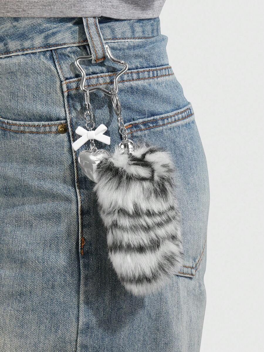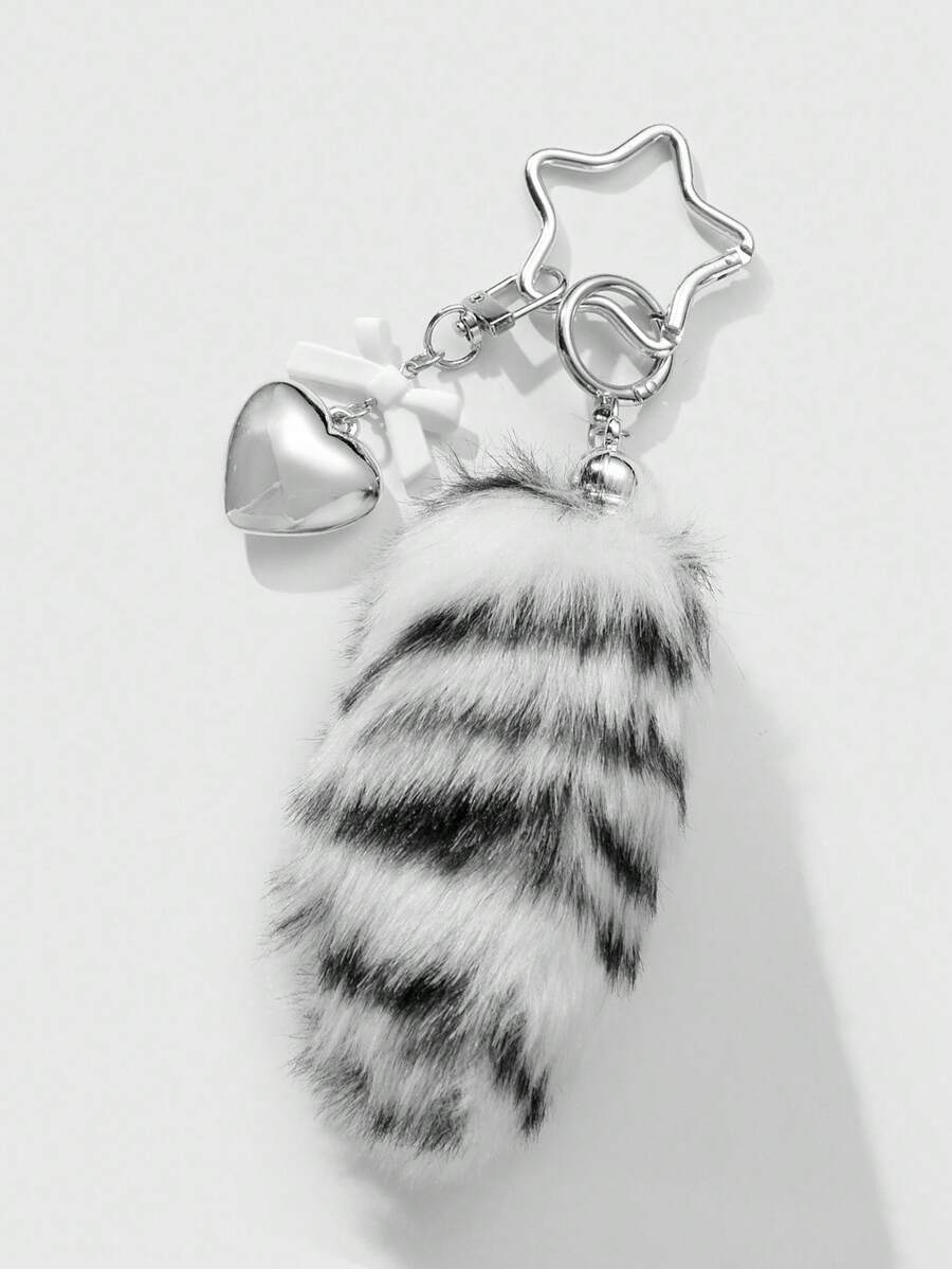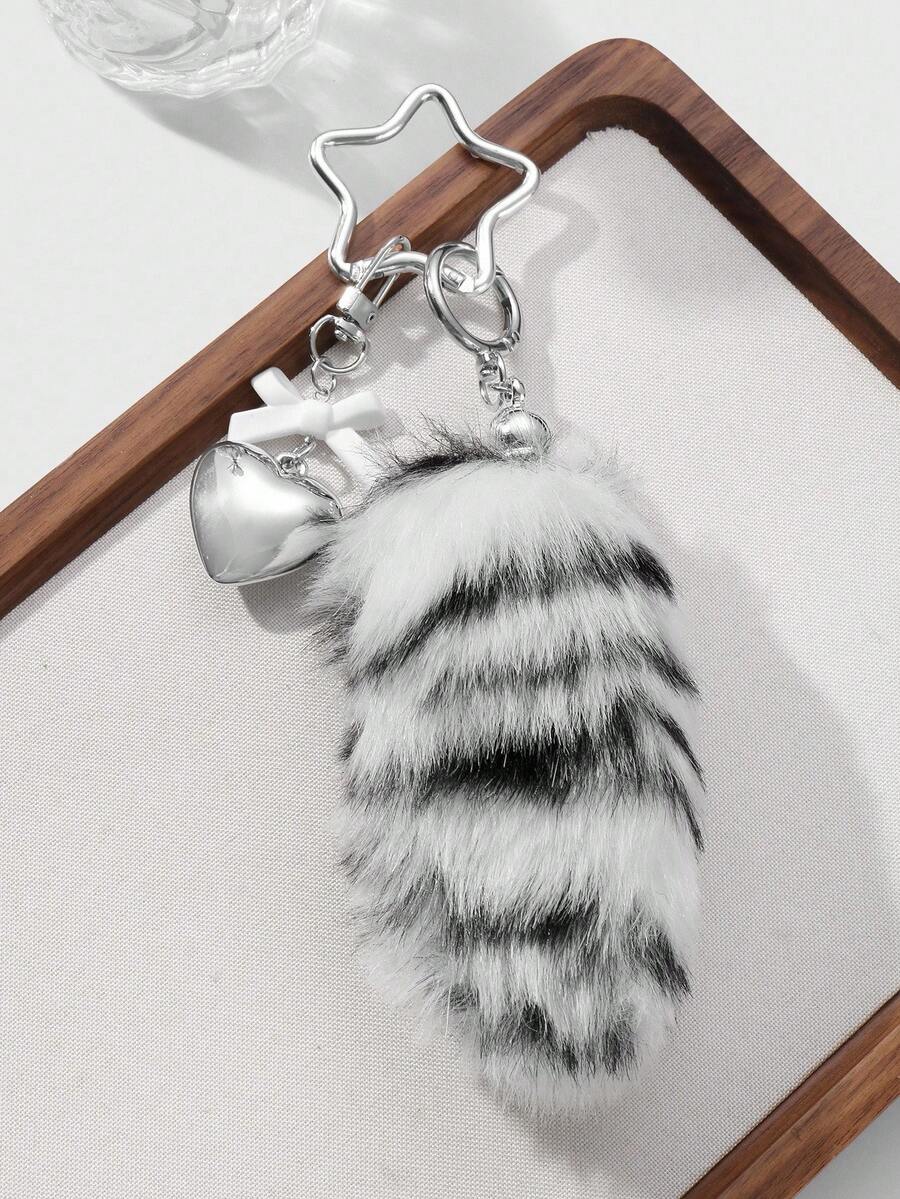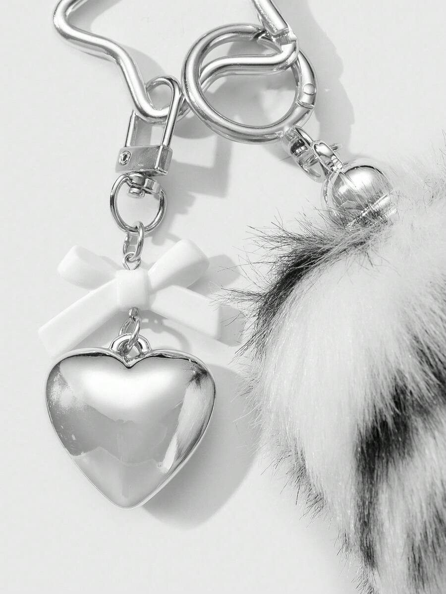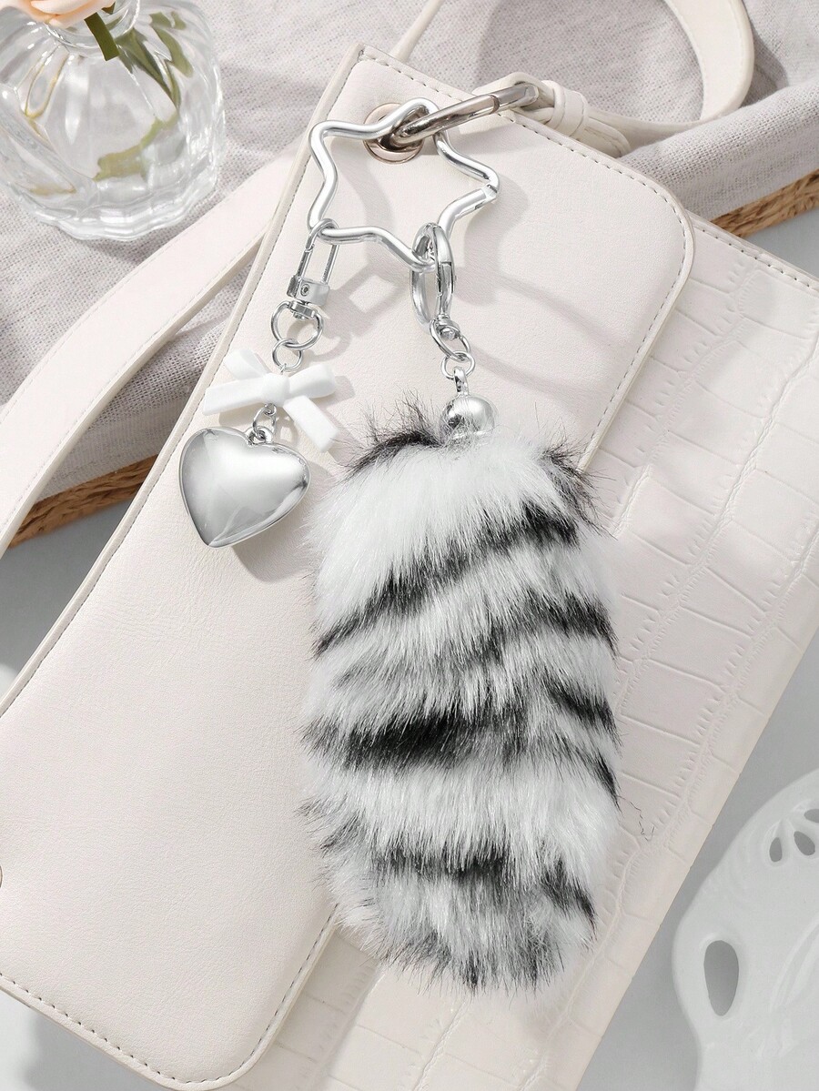 Grunge Punk 1pc Y2K Retro Elegant Minimalist High-End Acrylic Bow, CCB Heart, Black & White Ombre, Fluffy Mini Animal Tail, Star Keychain Bag Charm, Suitable For Women, Daily Wear, Holiday Gift