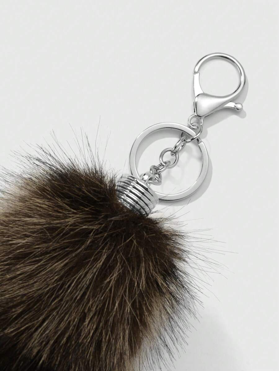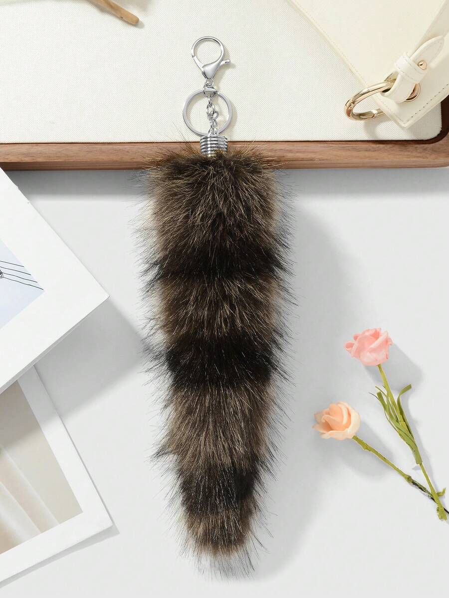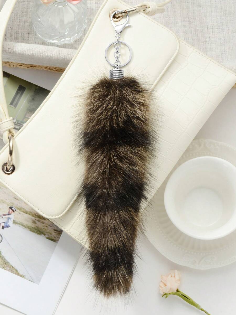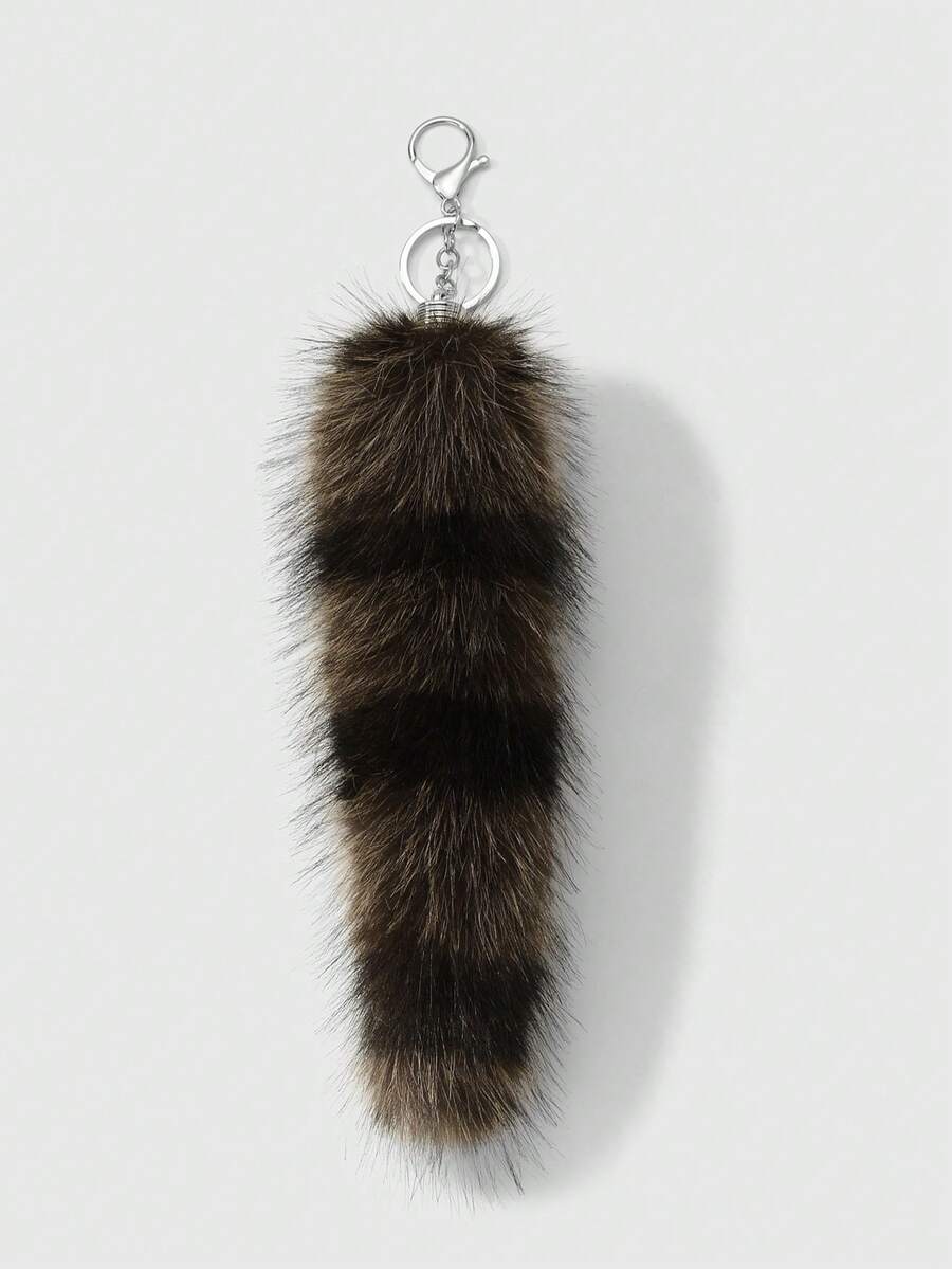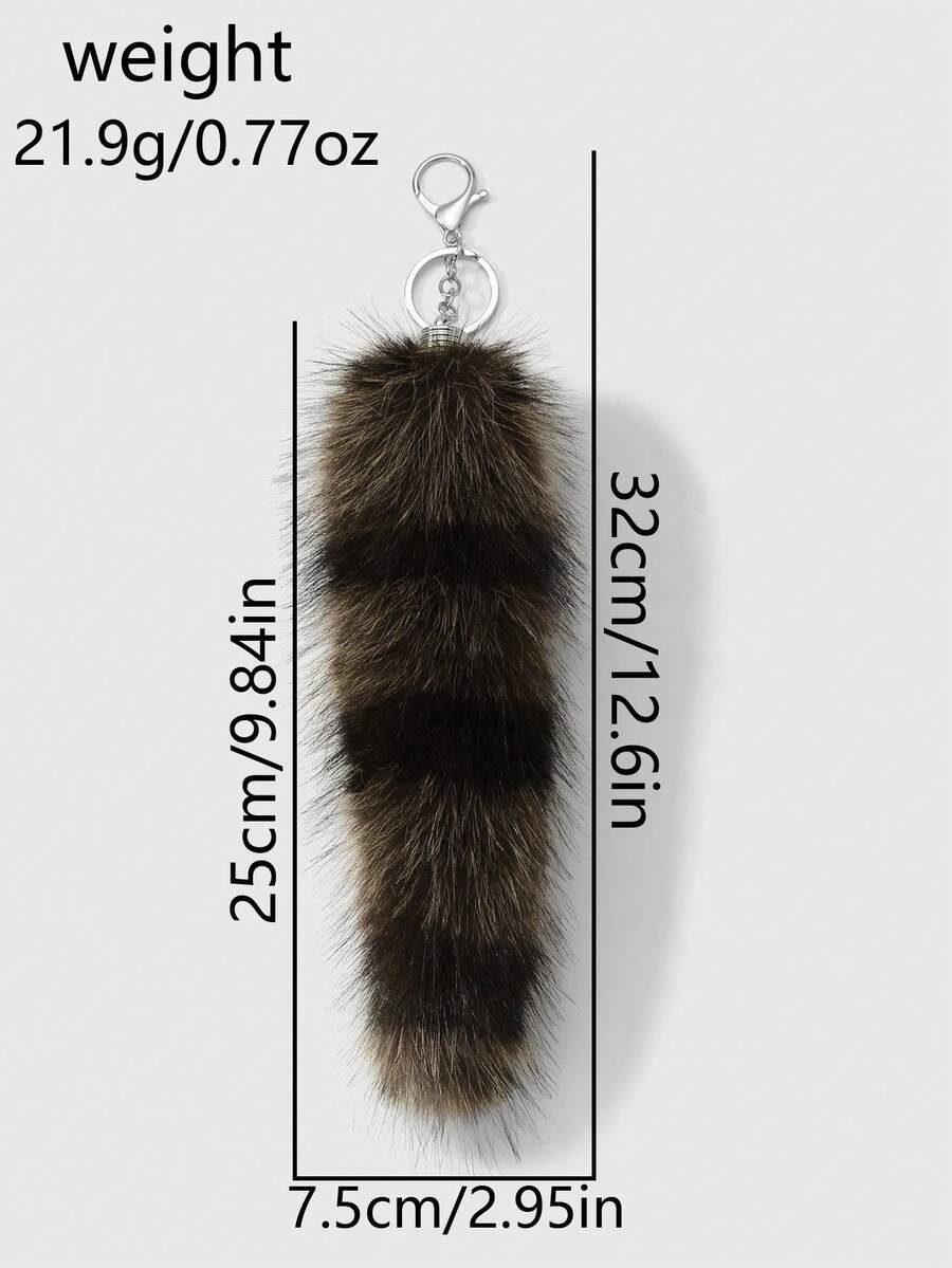 Grunge Punk 1pc Y2K Retro Stylish Chic High-End Brown Striped Faux Fur Animal Tail Key Chain Pendant, Suitable For Women/Girls Everyday Wear, Holiday Gift