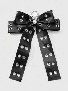 Grunge Punk 1pc Y2K Style Retro Punk Chic High-End Black Leather Double-Row Hollow Air Hole Faux Pearl Bow DIY Keychain Bag Pendant, Suitable For Women Girls Everyday Wear, Holiday Gift