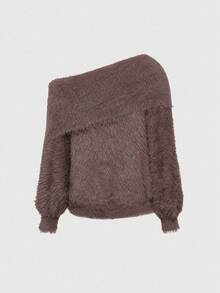 Grunge Punk 2-In-1 Asymmetrical Neck/Asymmetrical Neck Loose Fit Thick Sweater, Casual Vintage American Style
