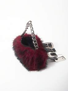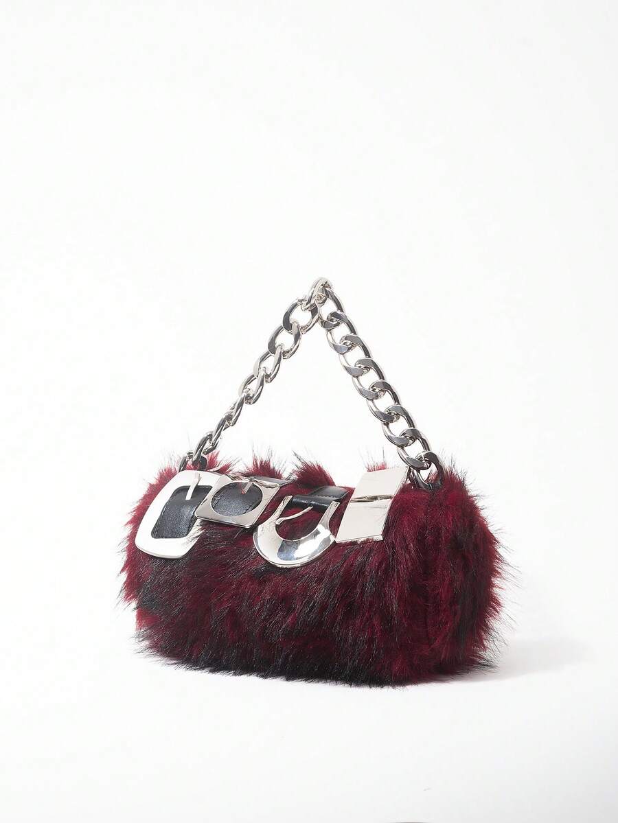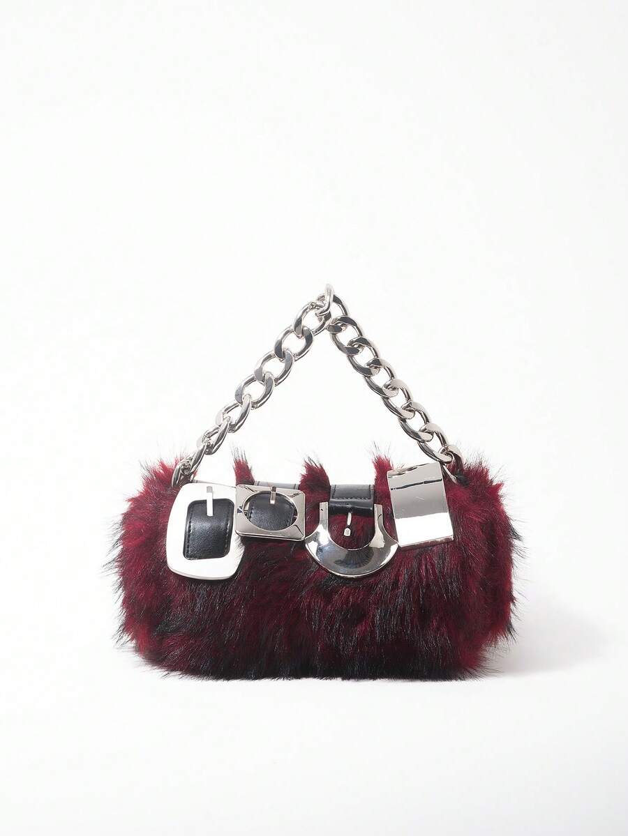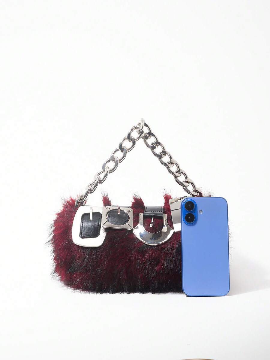 Grunge Punk 2000s Style Women Handbags,Punk Rivet Biker Bags,Metal Chain Bag,Fur Purse ,Autumn & Winter Wallets(Random Pattern)