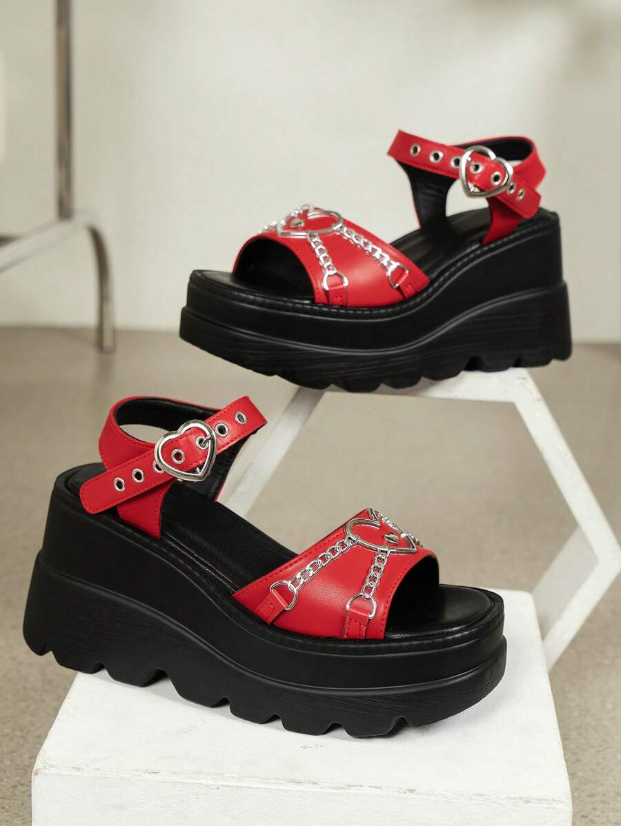 Grunge Punk 2024 New Gothic Dark-Themed Outdoor Casual Thick-Sole Platform Sandals, Summer