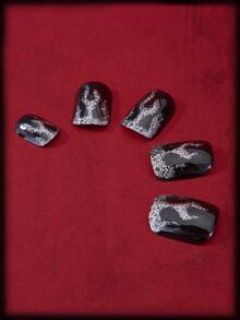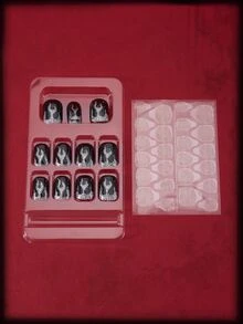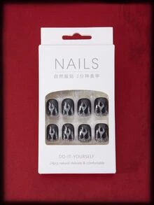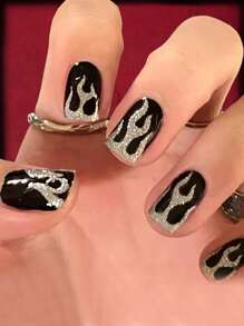 Grunge Punk 24pcs Flame Pattern Fake Nail & 1sheet Tape