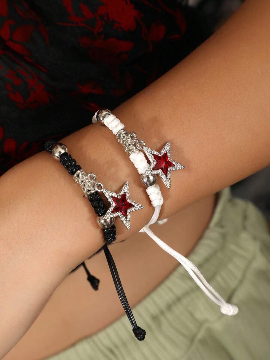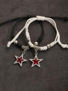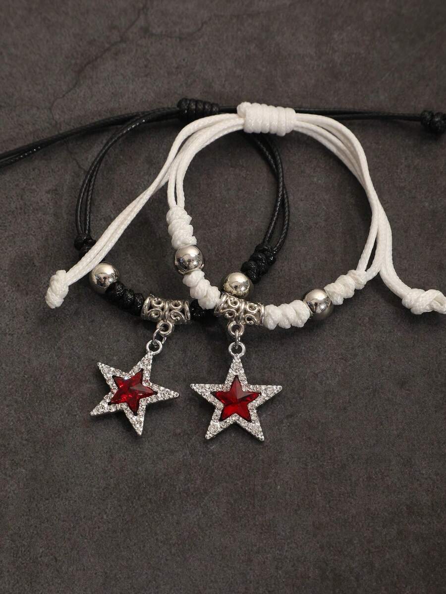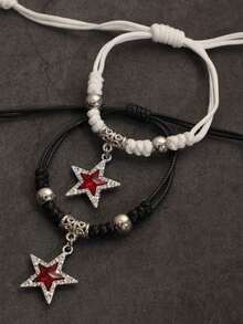 Grunge Punk 2pcs Fashion Zinc Alloy Rhinestone Star Charm Bracelet For Women For Daily Decoration