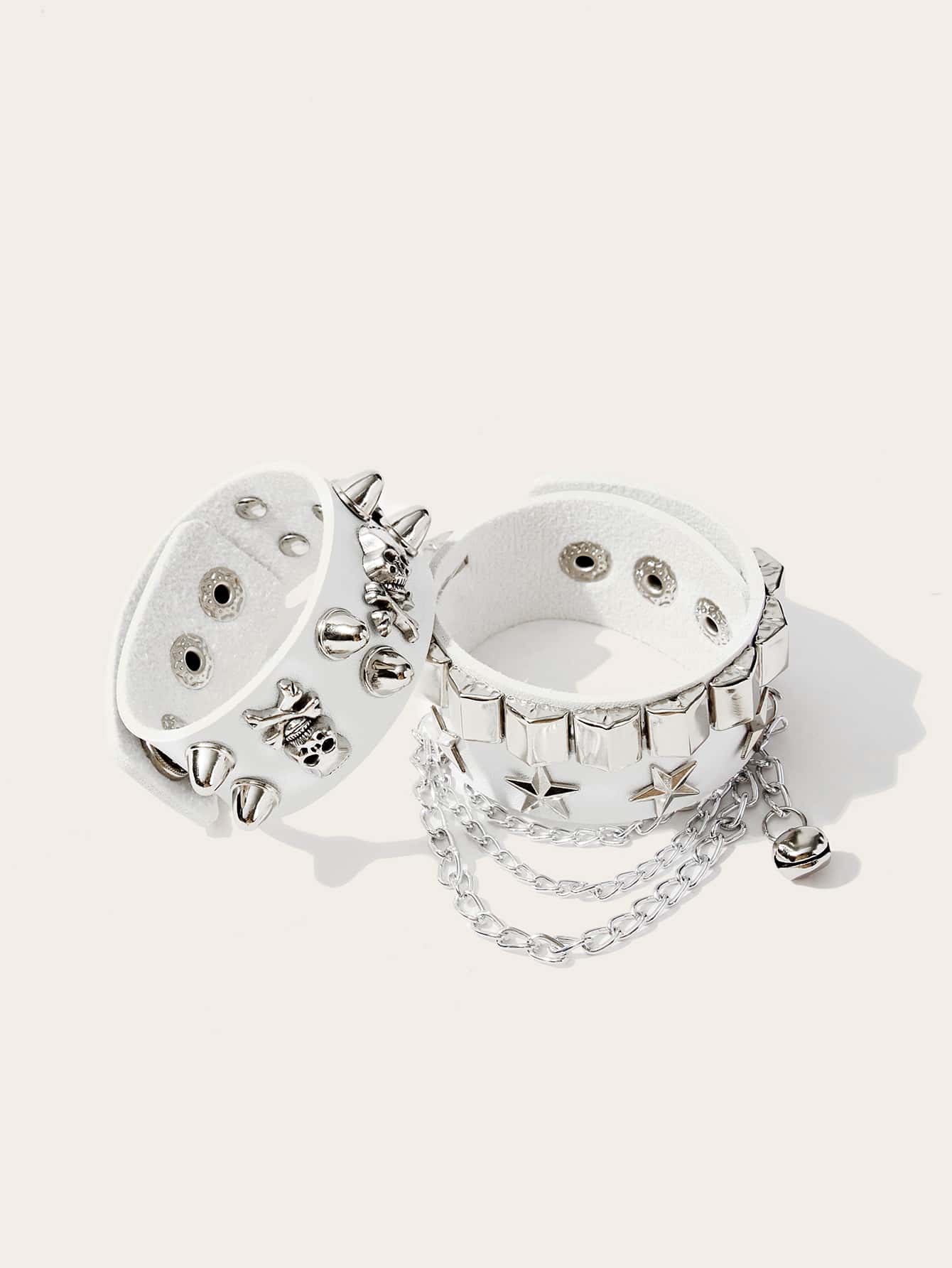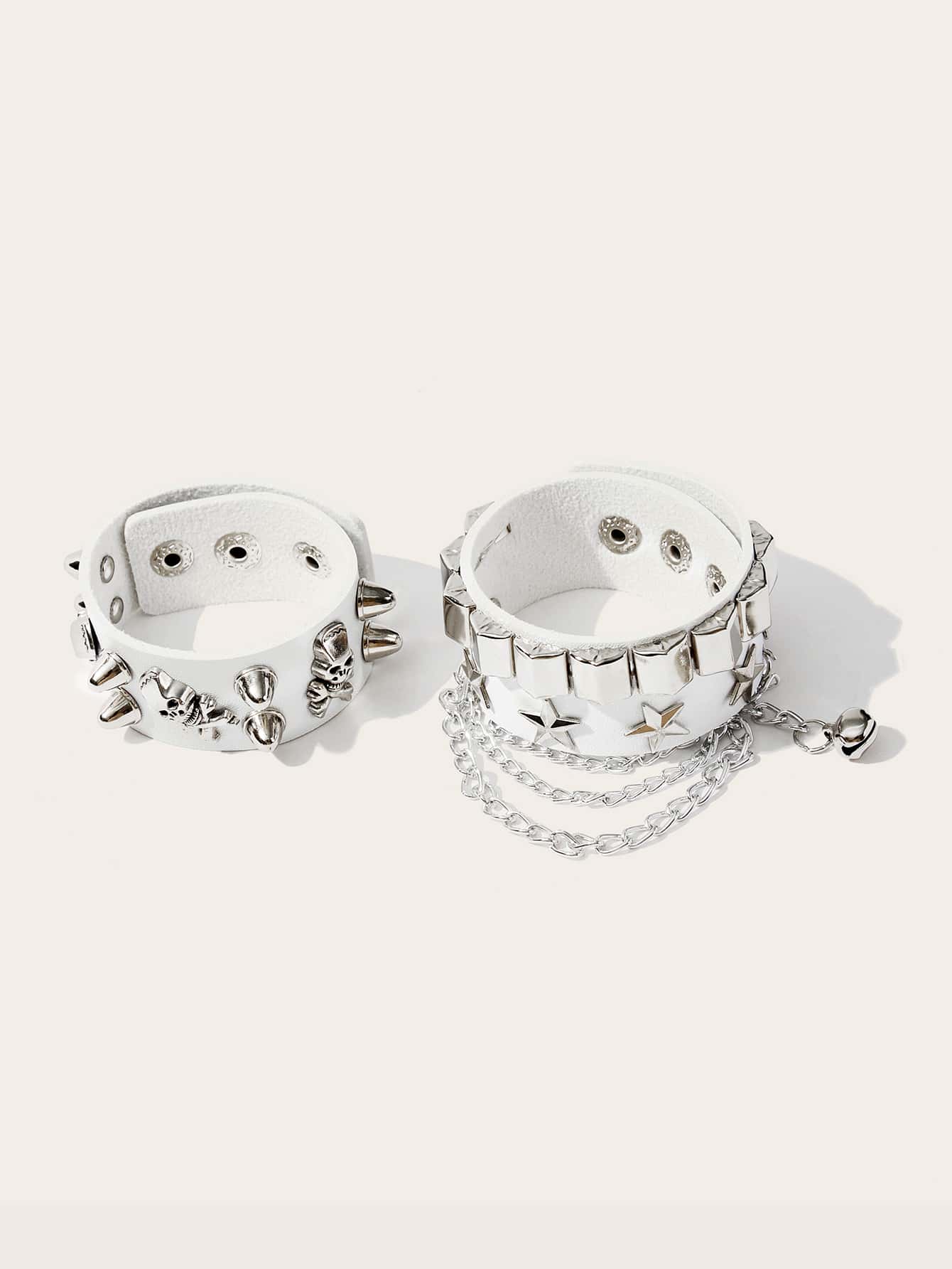 Grunge Punk 2pcs Skull & Studded Decor Bracelet