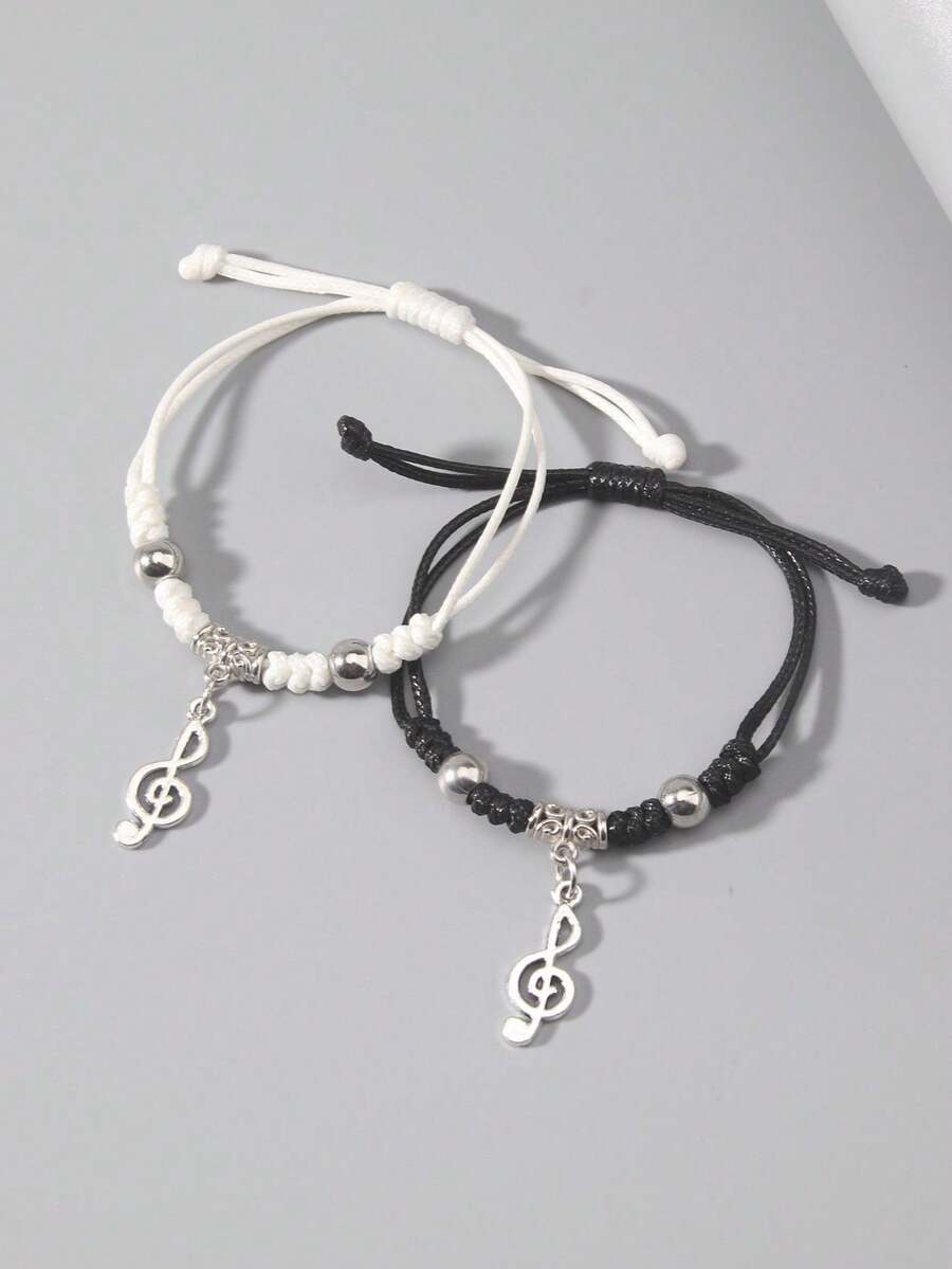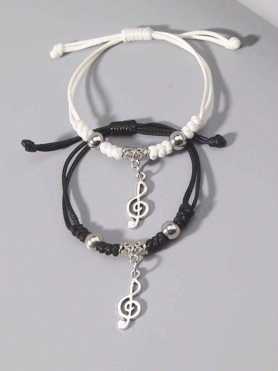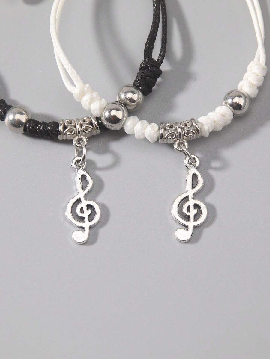 Grunge Punk 2pcs Vintage Punk Style Music Symbol & Instrument Pendant Necklace, Suitable For Music Festival, Daily Outfit Decoration
