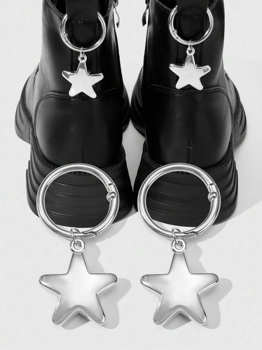 Grunge Punk 2pcs Y2K Minimalist Versatile Chic College Style Silver CCB Star DIY Shoe Buckle Shoe Decor Combination Set, Suitable For Women/Girls Daily Wear, Holiday Gift