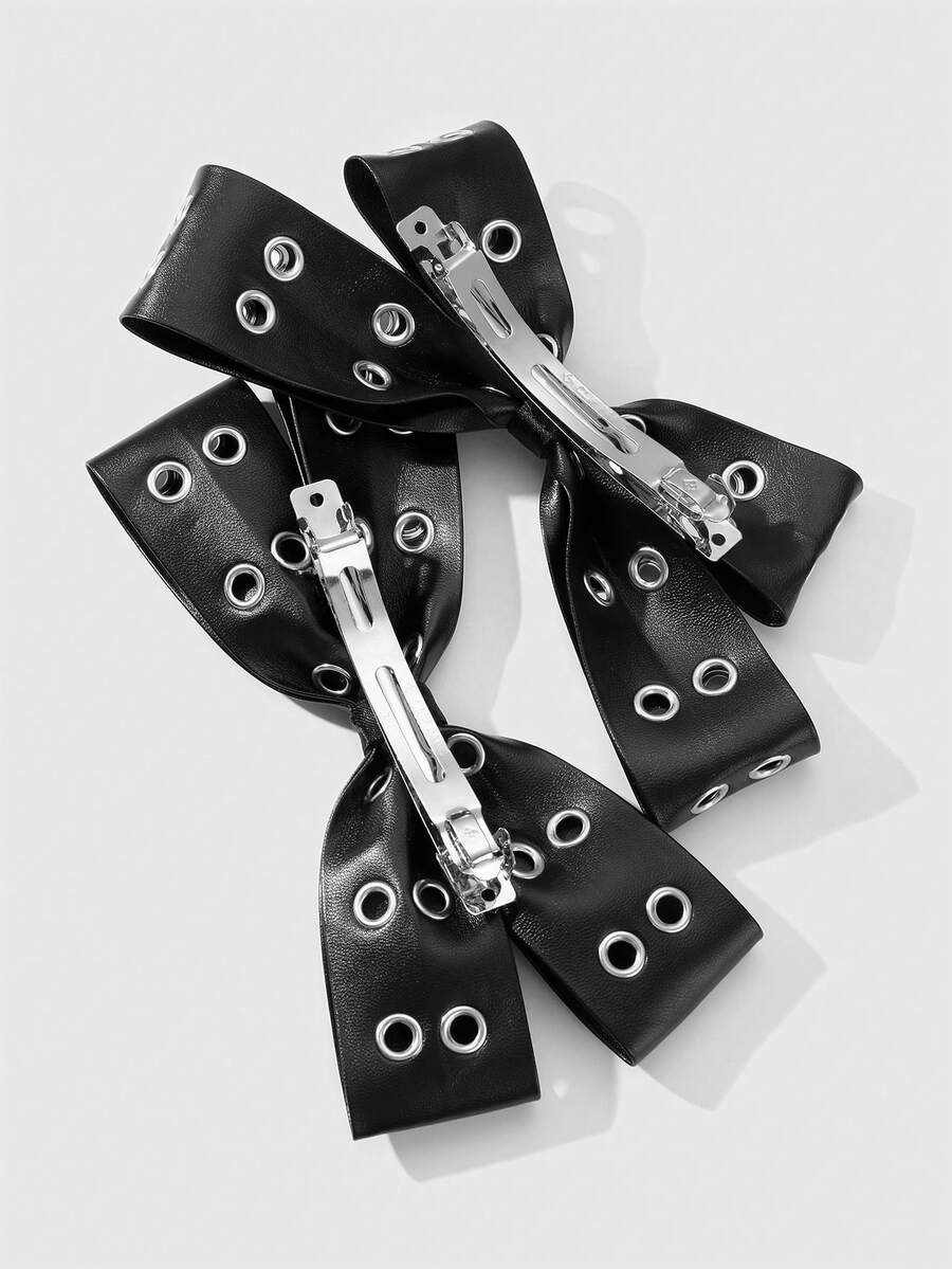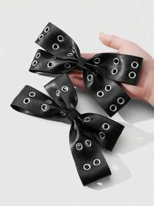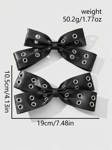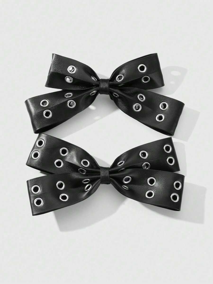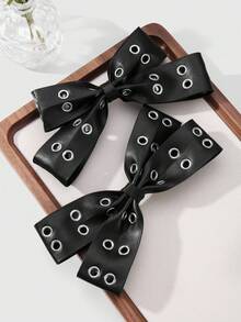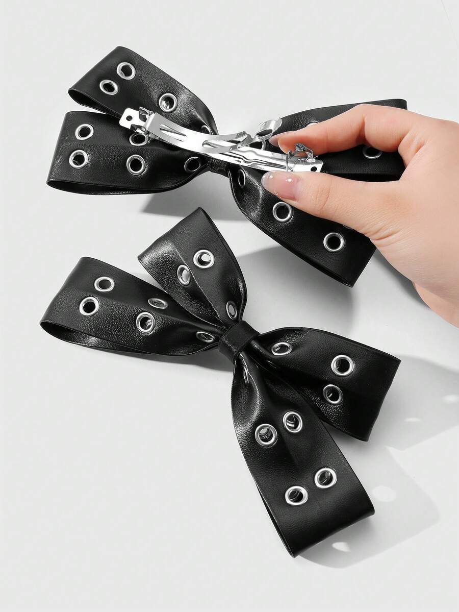 Grunge Punk 2pcs Y2K Style Vintage Elegant Punk Gothic Black Leather Double Air Vent Bow Decor DIY Hair Clip Claw Hairpins,Suitable For Sisters, Friends Daily Wear Or Holiday Gift, Halloween