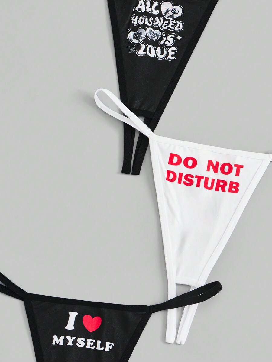 Grunge Punk 3pcs/Set Dark Punk Heart/Letter/Skull Pattern Open Crotch Thong Sexy Lingerie Combination