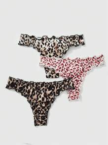Grunge Punk 3pcs Women's Leopard Print Underwear Set