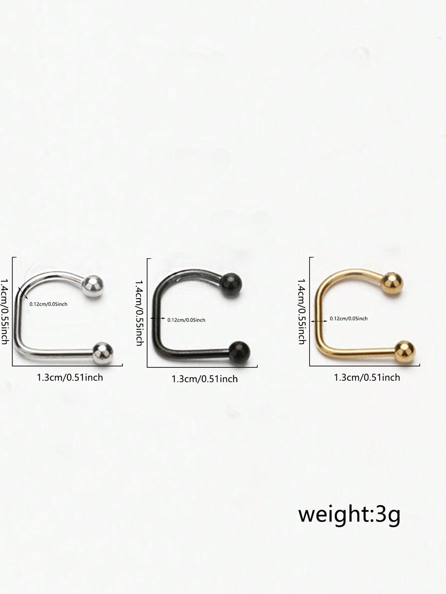 Grunge Punk 3pcs/set Stainless Steel D-shaped Lip Ring/monroe Stud With Small & Large Ball Ends Piercing Jewelry For Men & Women