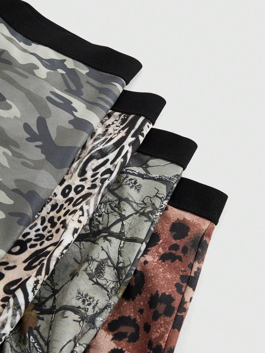 Grunge Punk 4pcs Assorted Gothic, Polka Dot, Leopard Print, Camouflage, Leaf Pattern Punk Briefs