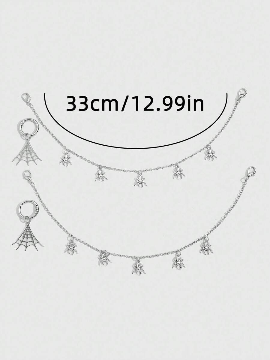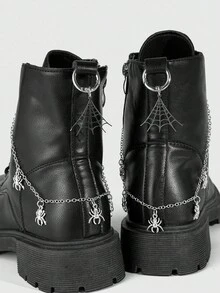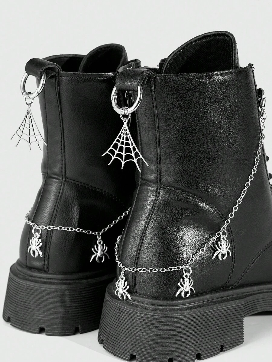 Grunge Punk 4pcs/Set Gothic Style Silver-Color Spider Chain Shoe Decor, Spider Web Halloween Atmosphere Shoe/Boot Decorative Chain